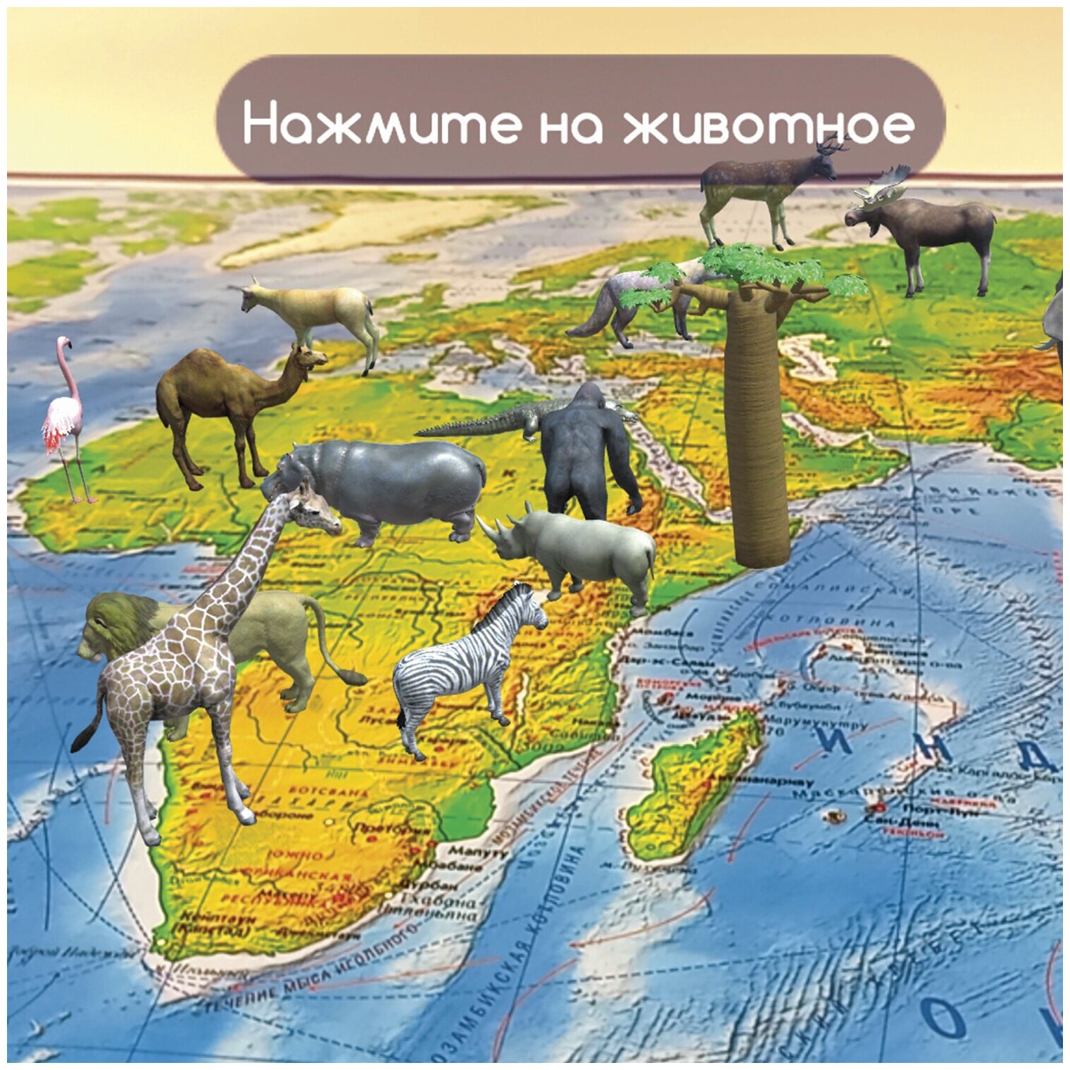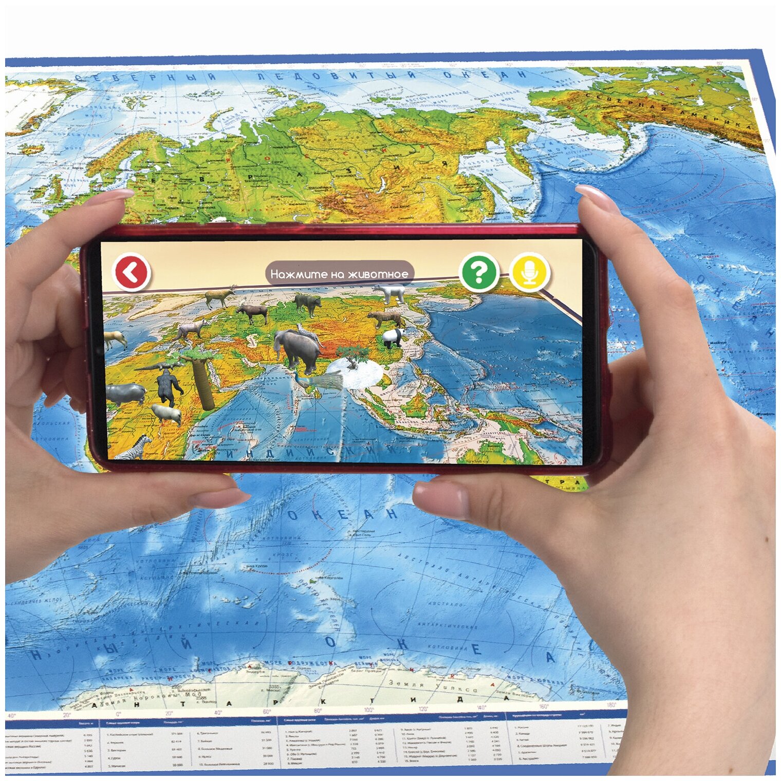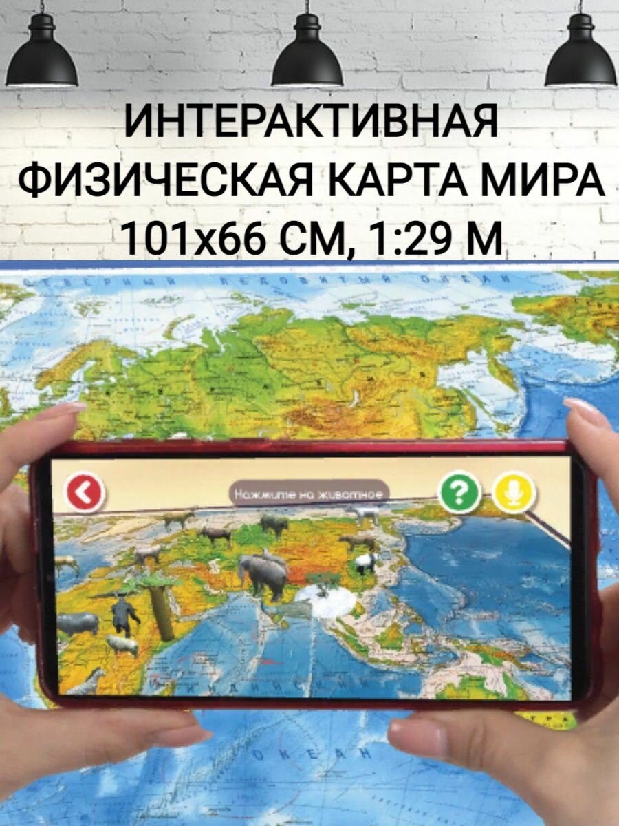 Карта мира физическая 101х66 см 1:29М с ламинацией интерактивная европодвес, 2020
