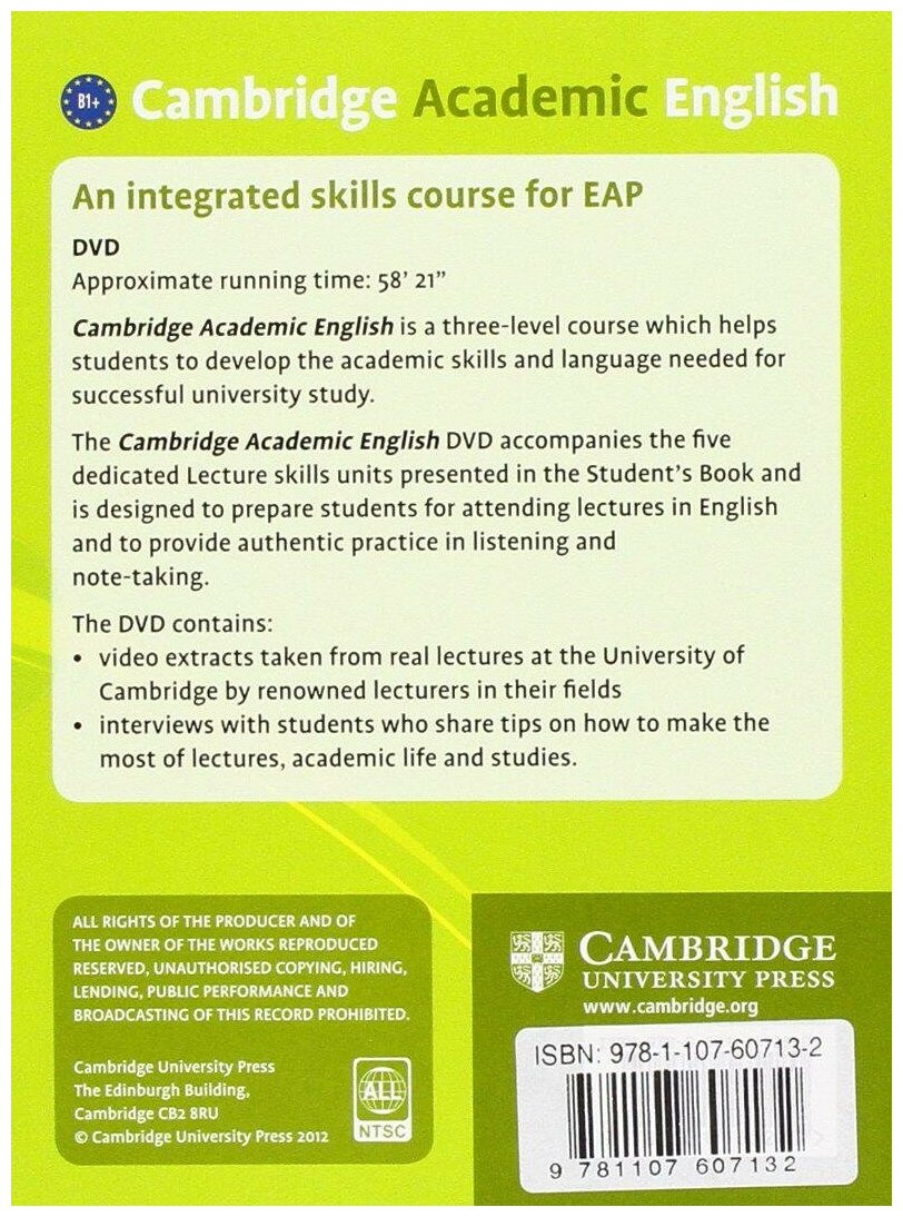 Cambridge Academic English - трехуровневый курс для студентов вузов, рассчитан на 120 – 140 на каждом уровне обучения. Пособие содержит специальные разделы Study Tips и Focus on your subject, в него входят лекции преподавателей Кембриджского университета и интервью со студентами, которые будут способствовать овладению современным языком академического общения.