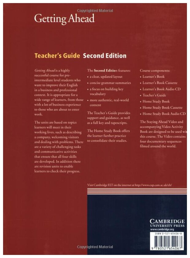 This thoroughly revised course is designed for pre-intermediate level students who want to improve their English in a business and professional context. At the same time as drawing on the learner's own experience, the course provides activities which give the less experienced learner the opportunity to participate effectively. The course offers: units based on topics learners will meet such as describing a company, welcoming visitors and dealing with problems, a variety of challenging tasks and communicative activities that ensure that all four skills are developed, clearly structured and measured progression, with revision units to enable learners to check their progress, clear and accessible layout. The Teacher's Guide provides support and guidance, as well as a full key and tapescripts. The Home Study Book offers the learner further practice to consolidate their studies. Getting Ahead leads perfectly into Further Ahead.