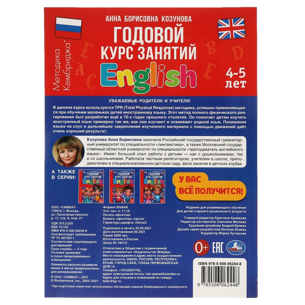 Книга Английский язык 4-5 лет Годовой курс занятий Козунова А. Б. (Митяева С. -редактор-составитель); Умка, 2023