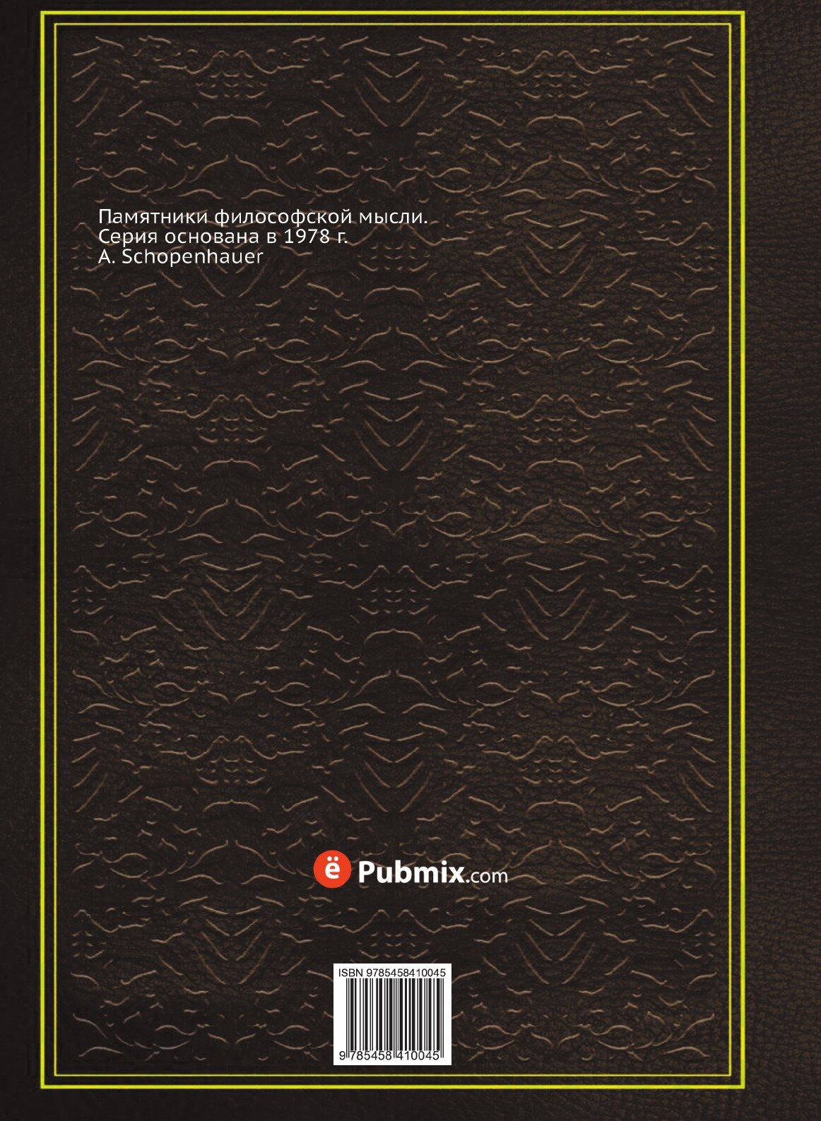 Эта книга — репринт оригинального издания, созданный на основе электронной копии высокого разрешения, которую очистили и обработали вручную, сохранив структуру и орфографию оригинального издания. Редкие, забытые и малоизвестные книги, изданные с петровских времен до наших дней, вновь доступны в виде печатных книг._x000D_ _x000D_ Памятники философской мысли._x000D_ Серия основана в 1978 г._x000D_ A. Schopenhauer