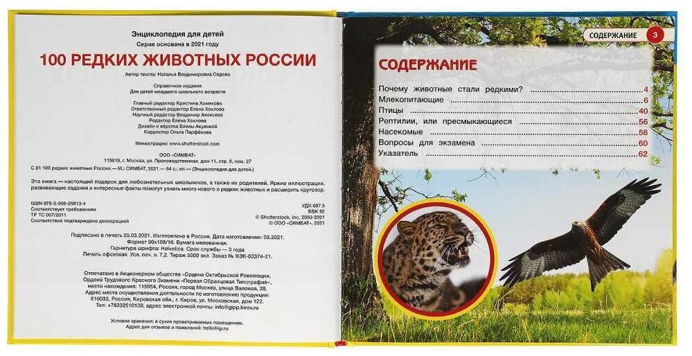 Книга Детская энциклопедия Умка 100 редких животных России для детей 215х215 мм 270г (Хомякова К); Умка