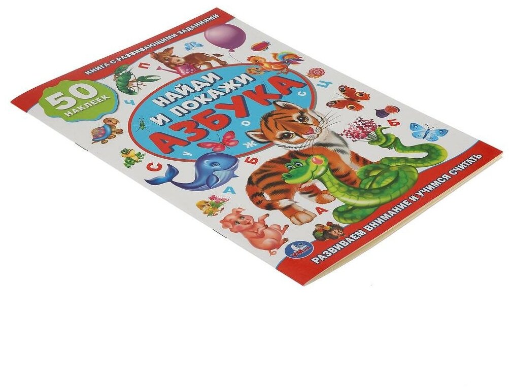 Книга-активити с развивающими заданиями «Азбука» из серии «Найди и покажи» ТМ «УМка» непременно понравится маленькому любознайке:- 50 цветных наклеек- обучающие рассказы для малышей- красочные иллюстрации- знакомимся с буквами- развиваем внимание и учимся считатьЭта яркая развивающая книжка в игровой манере познакомит ребёнка с азбукой и окружающим миром. Яркие иллюстрации и стикеры, а также интересные игровые задания сделают занятия увлекательными.Занятия с книгой-активити ТМ «УМка» расширяют кругозор и развивает:- мелкую моторику- мышление- внимание- усидчивость- воображениеОбъём: 8 стр. Формат книги: 210 х 285 мм.Материал: офсетная бумага.Рекомендовано детям старшего дошкольного возраста.