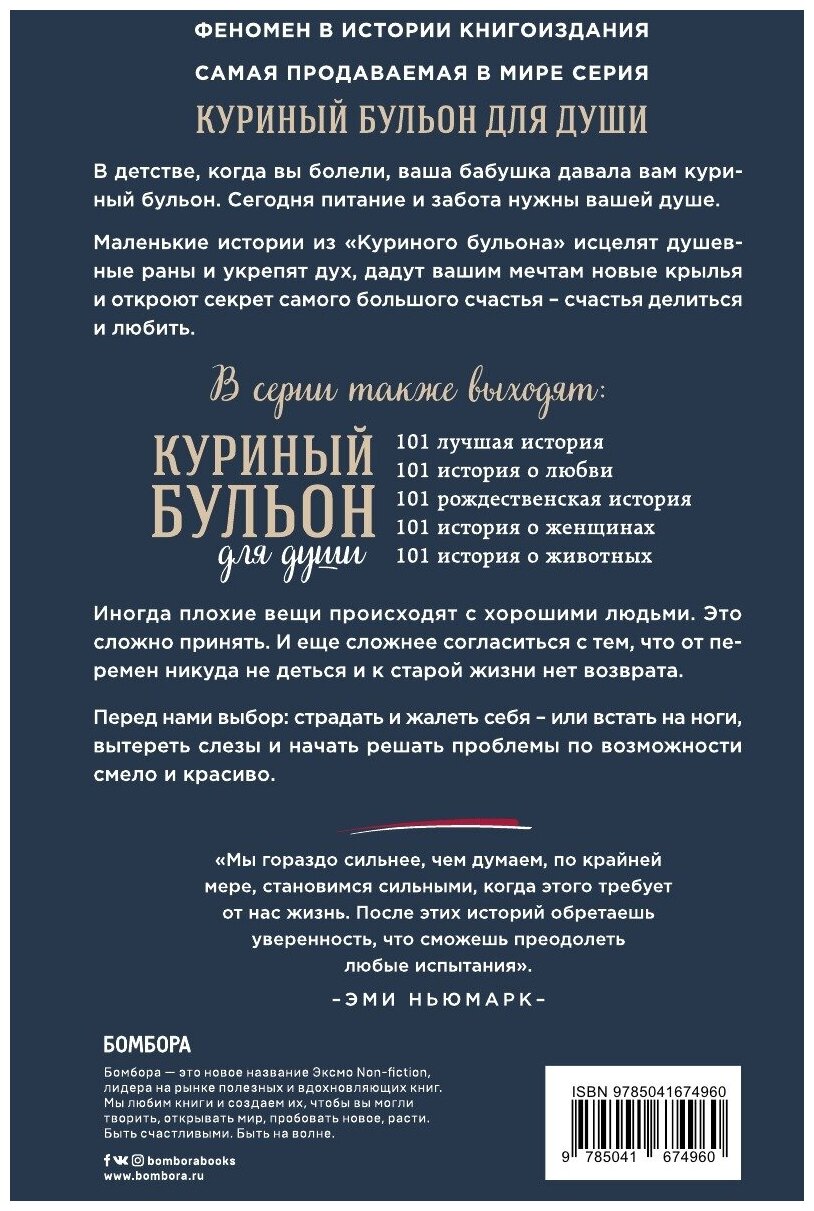 Иногда плохие вещи случаются с хорошими людьми. Это сложно принять. И еще сложнее согласиться с тем, что от перемен никуда не деться и к старой жизни нет возврата. Перед нами выбор: страдать и жалеть себя - или встать на ноги, вытереть слезы и начать решать проблемы по возможности смело и красиво. _x000D_ Мы гораздо сильнее, чем думаем, по крайней мере, становимся сильными, когда этого требует от нас жизнь. Вдохновляющие истории из этого сборника "Куриного бульона" помогут преодолеть любые испытания.