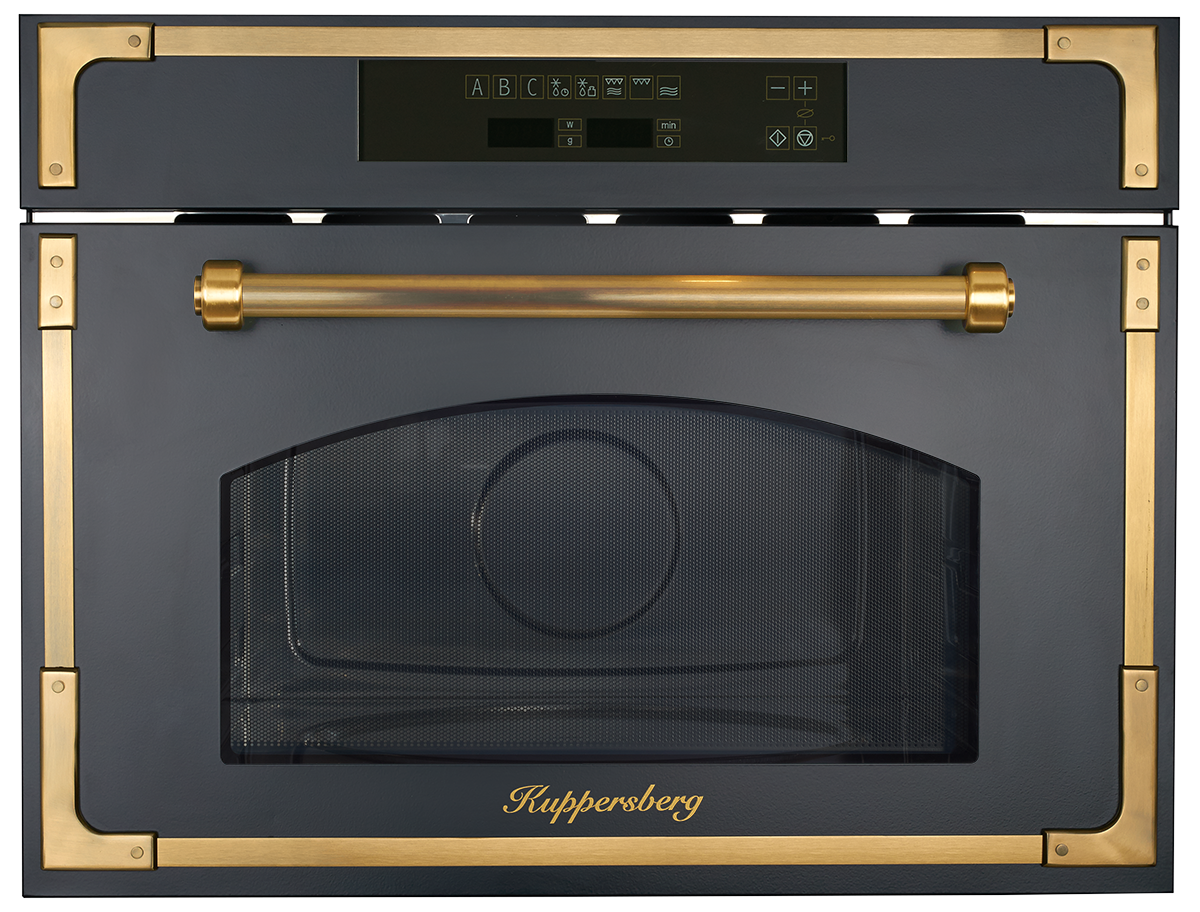 Kuppersberg Элегантная микроволновая печь Kuppersberg в стиле кантри станет изюминкой для любого кухонного интерьера. Микроволновая печь имеет двенадцать режимов приготовления, три из которых можно занести в память прибора. Прекрасными дополнениями у данной модели являются полностью сенсорная панель управления, удобная откидная дверца и галогенное освещение. А уникальный дизайн с бронзовыми рамками по периметру и удобная ручка не оставят равнодушным любого пользователя.