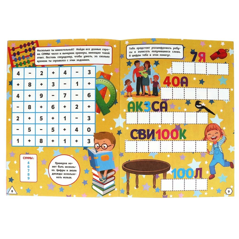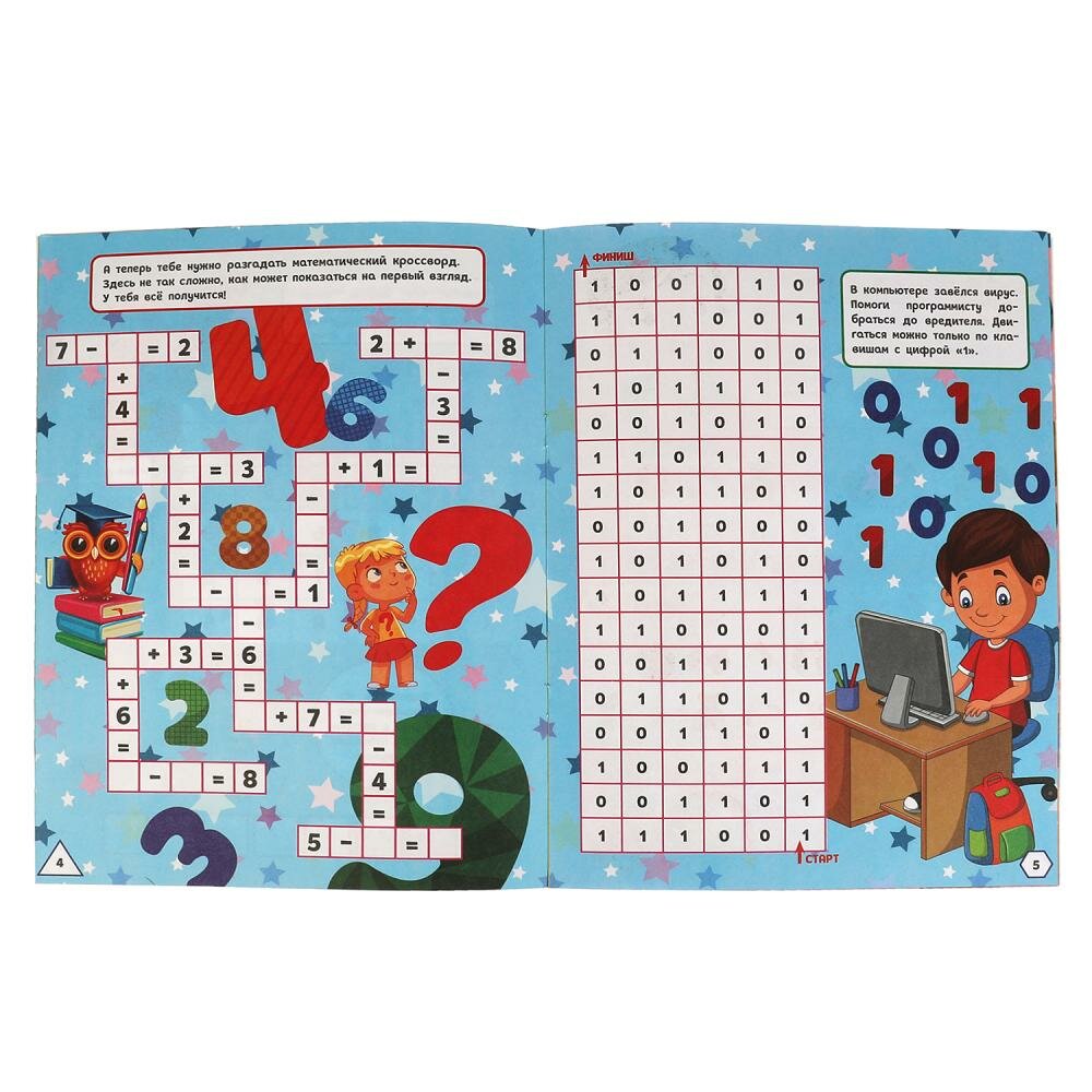 Книга Активити Весёлая математика.Ребусы кроссворды головоломки 3 в 1 12 стр. (без автора), 2021