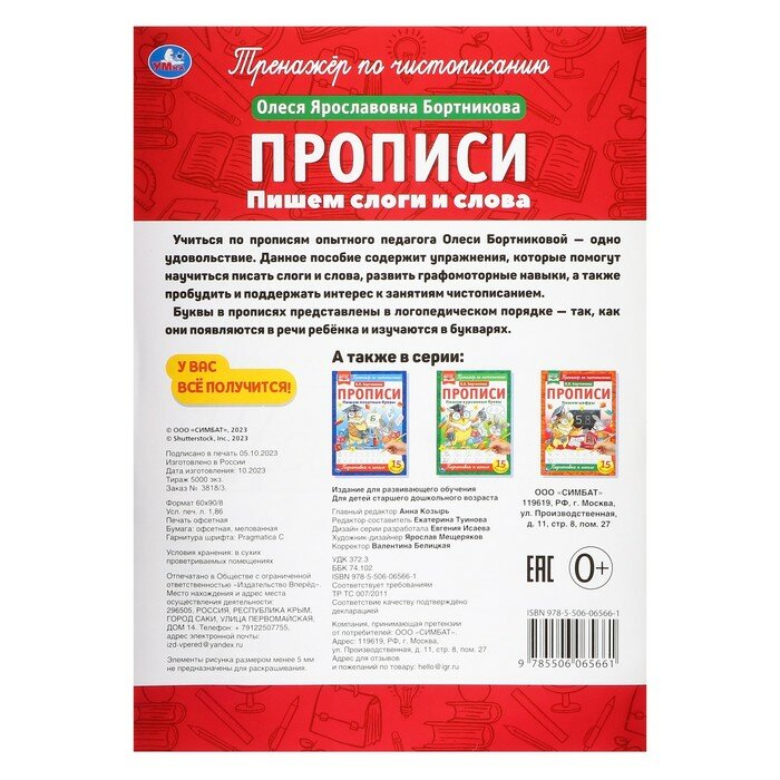 На сегодняшний день товар «Книга: Книга Пишем слоги и слова. О.Я.Бортникова. Прописи А4. 195х275 мм. 16 (Бортникова Ольга Яковлевна); СИМБАТ, 2021» можно купить с кешбеком в 1 магазине: Яндекс.Маркет