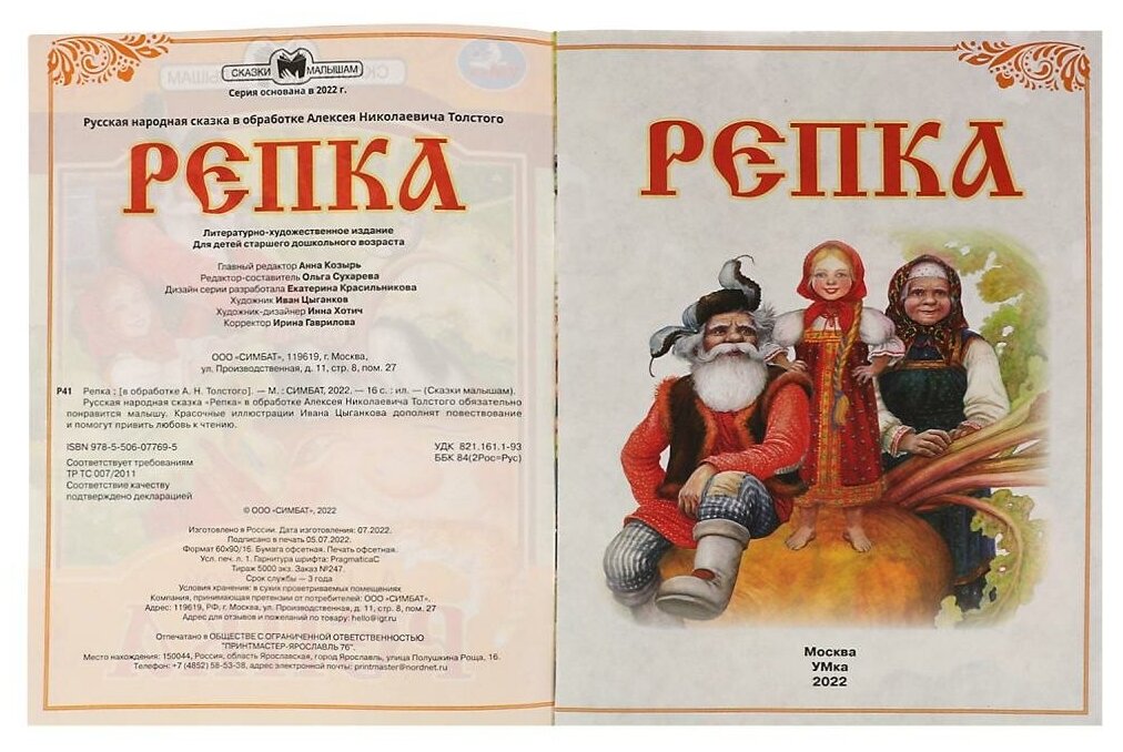 Книга 336549 ьРепка. Сказки малышам. А.Н.Толстой 145х195мм. Скрепка. 14 стр. Умка (Толстой Алексей Николаевич), 2020
