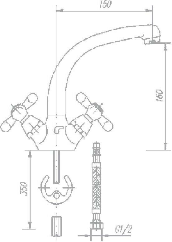 - Высота смесителя до излива 160 мм
