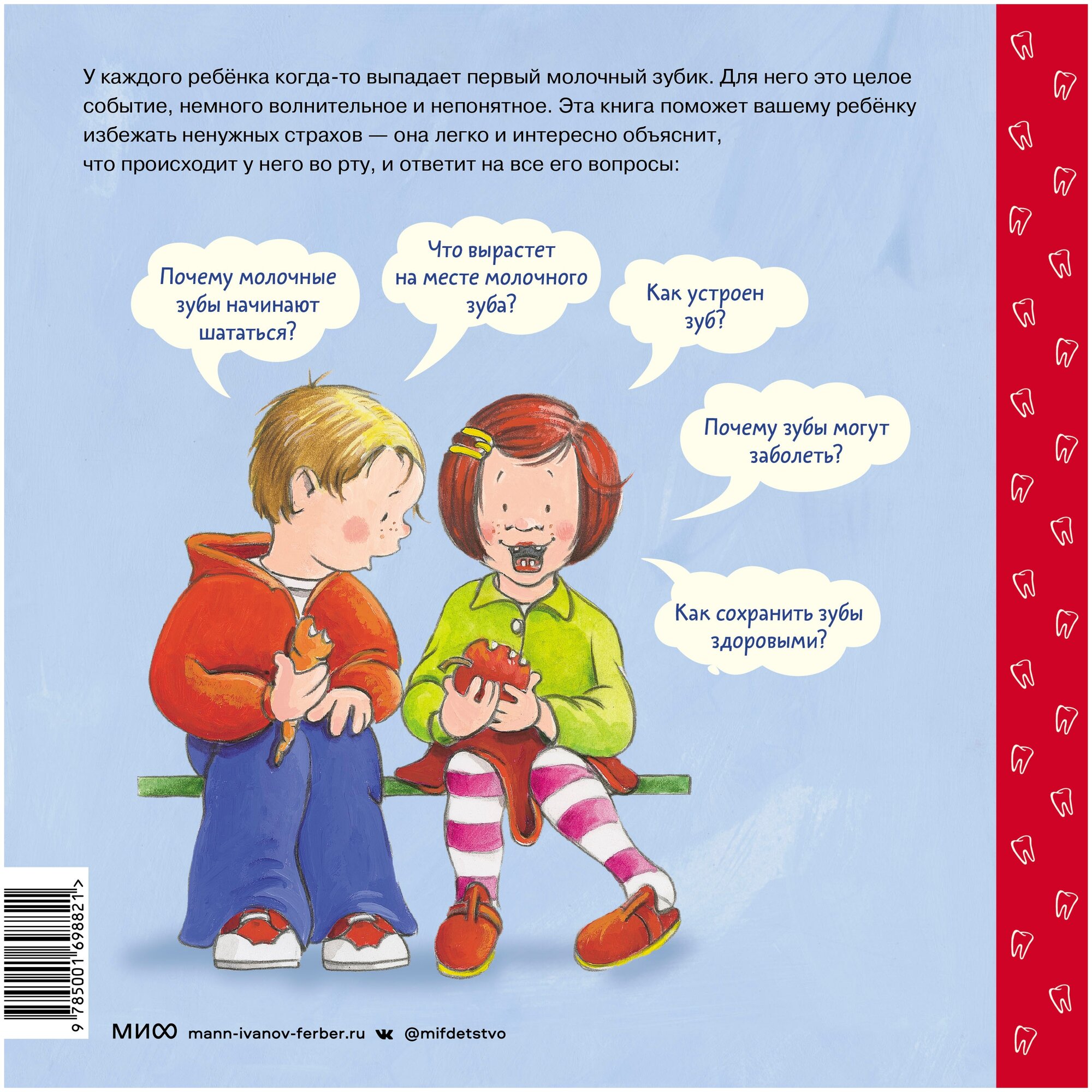 Для чего нам нужны зубы? Как они устроены? Почему молочные зубы начинают шататься? Что вырастет на месте молочного зуба? Как сохранить зубы крепкими и здоровыми? Одна из самых популярных детских книг о зубах в Европе.