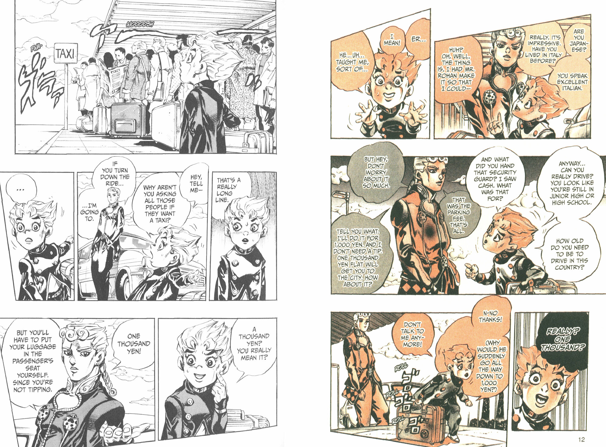A multigenerational tale of the heroic Joestar family and their never-ending battle against evil!The legendary Shonen Jump series is now available in deluxe hardcover editions featuring color pages! JoJo’s Bizarre Adventure is a groundbreaking manga famous for its outlandish characters, wild humor and frenetic battles.Golden Wind is here! The highly-acclaimed fifth arc of Hirohiko Araki’s JoJo’s Bizarre Adventure shifts the action from Japan to Italy, as Koichi Hirose heads to Europe to find an aspiring gangster named Giorno Giovanna, the secret son of Dio Brando, scourge of the Joestar family. Organized crime meets family drama and unbelievable enemy Stands in JoJo’s Bizarre Adventure: Part 5—Golden Wind!