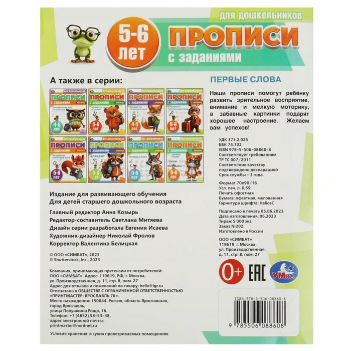 На сегодняшний день товар «Книга: Прописи УМка для дошкольников с заданиями 5-6 лет Первые слова А5 на скрепке (Митяева С.), 2023» можно купить с кешбеком в 1 магазине: Яндекс.Маркет