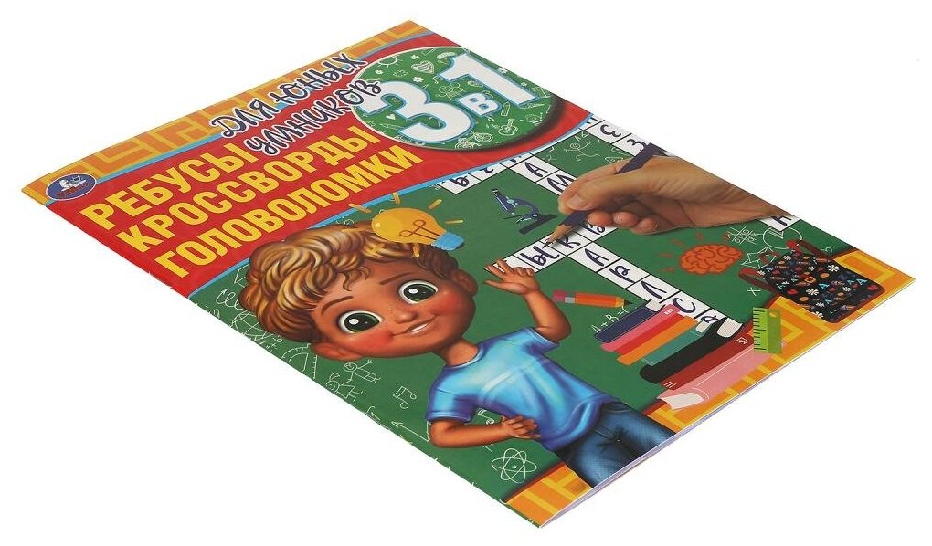 Книга Ребусы кроссворды головоломки 3 в 1. Для юных умников (Автор не указан); Умка, 2021