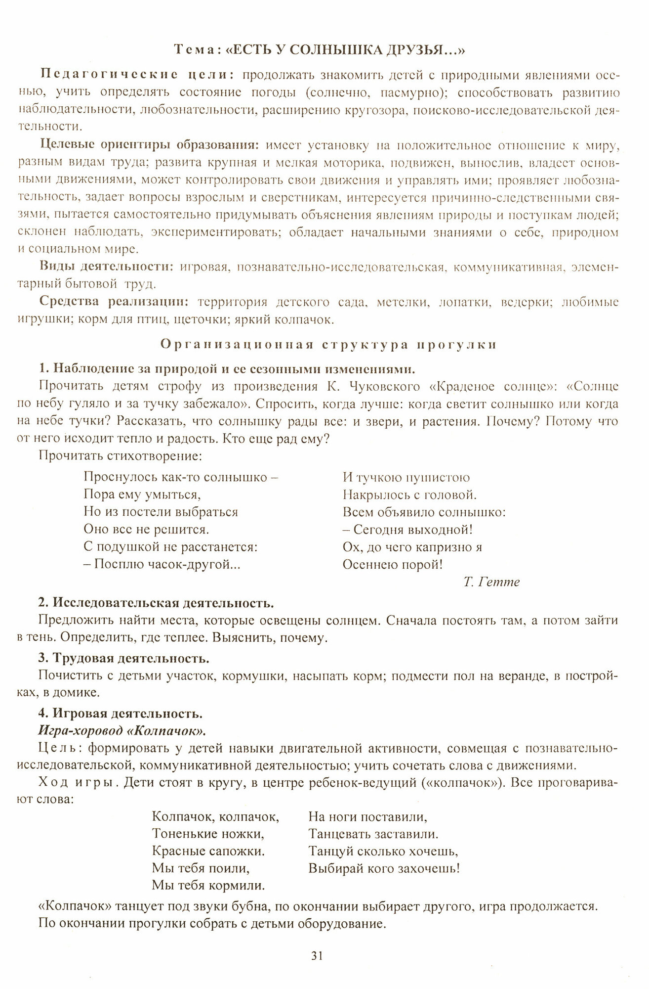 Образовательная деятельность на прогулках. Картотека прогулок на каждый день по программе "От рождения до школы". Младшая группа (от 3 до 4 лет). 4937. Костюченко М. П.В пособии представлена система прогулок для младшей группы (от 3 до 4 лет), разработанная на основе ФГОС до по примерной общеобразовательной программе дошкольного образования "От рождения до школы" под редакцией Н. Е. Вераксы, Т. С. Комаровой, М. А. Васильевой (М: Мозаика-Синтез). Для каждой прогулки сформулированы педагогические цели, целевые ориентиры образования, виды деятельности, предложен набор средств по развитию познавательных, речевых и практических умений младших дошкольников в процессе ознакомления с объектами природы и их явлениями, первичными представлениями о себе и других людях при освоении содержания образовательных областей "Познавательное развитие", "Социально-коммуникативное развитие", "Художественно-эстетическое развитие", "Речевое развитие", "Физическое развитие". Предназначено педагогам и руководителям дошкольных учреждений, специалистам дошкольной педагогики; рекомендовано студентам высших и средних педагогических учебных заведений.