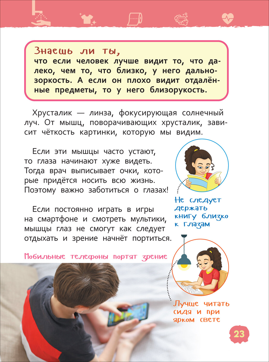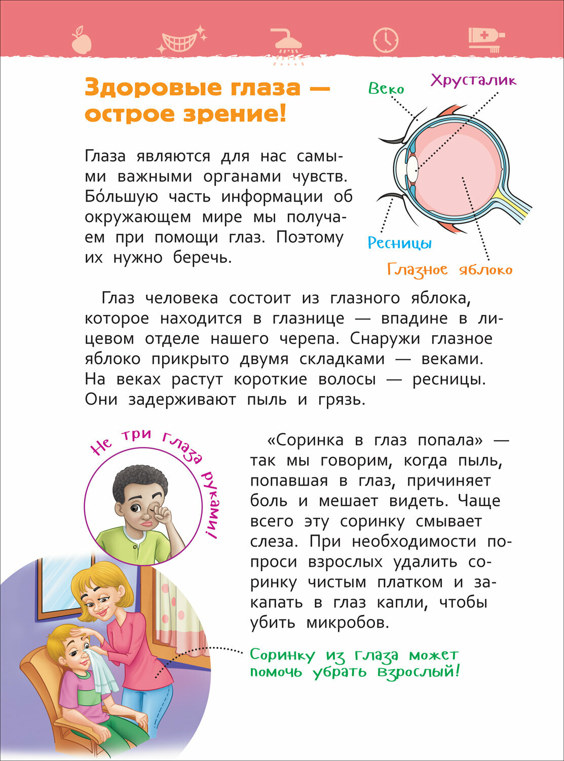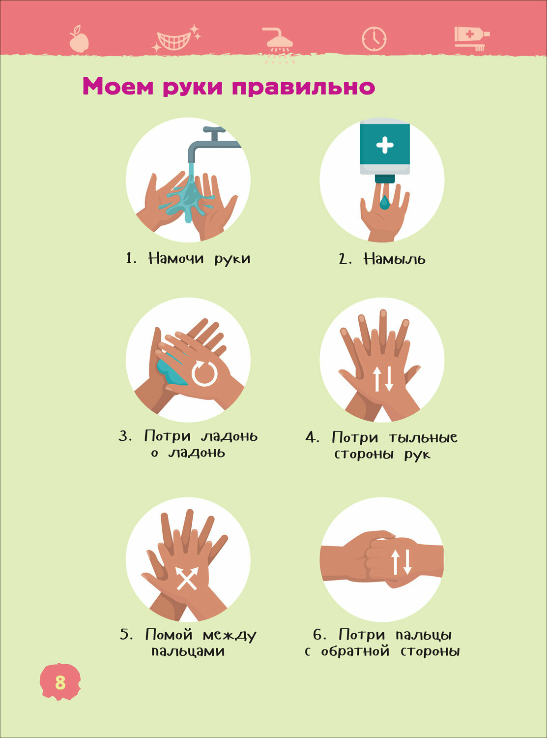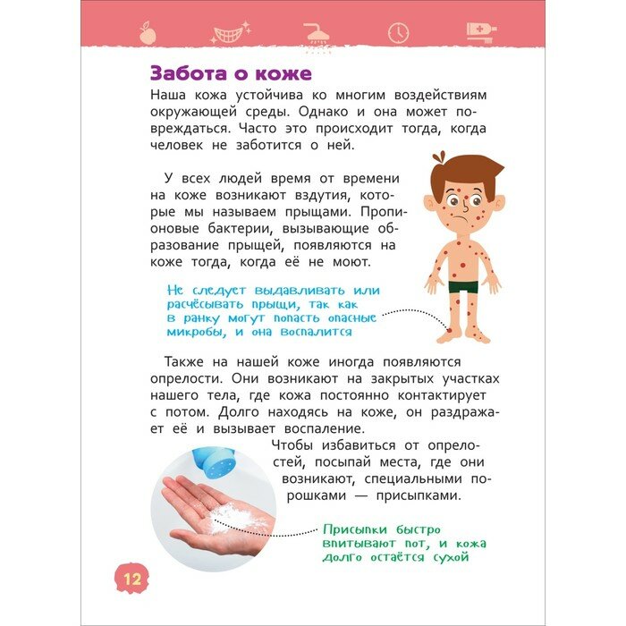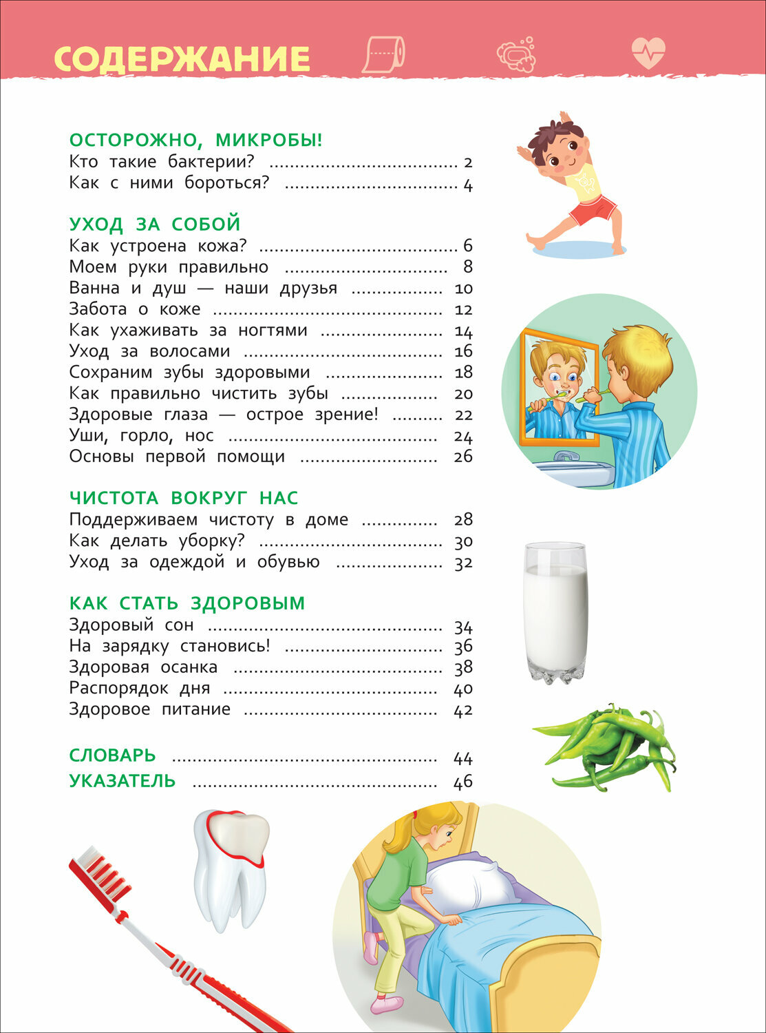 Прочитав эту книгу, ребенок научится правильно мыть руки, чистить зубы, ухаживать за волосами и ногтями. Он познакомится с крошечными защитниками человеческого организма и узнает, что нужно делать для того, чтобы помочь им бороться с микробами. Маленький читатель также поймет, для чего нужно соблюдать режим дня, правильно питаться и поддерживать порядок в своей комнате. А красочные иллюстрации и подробные схемы помогут ему научиться следить за своим здоровьем.