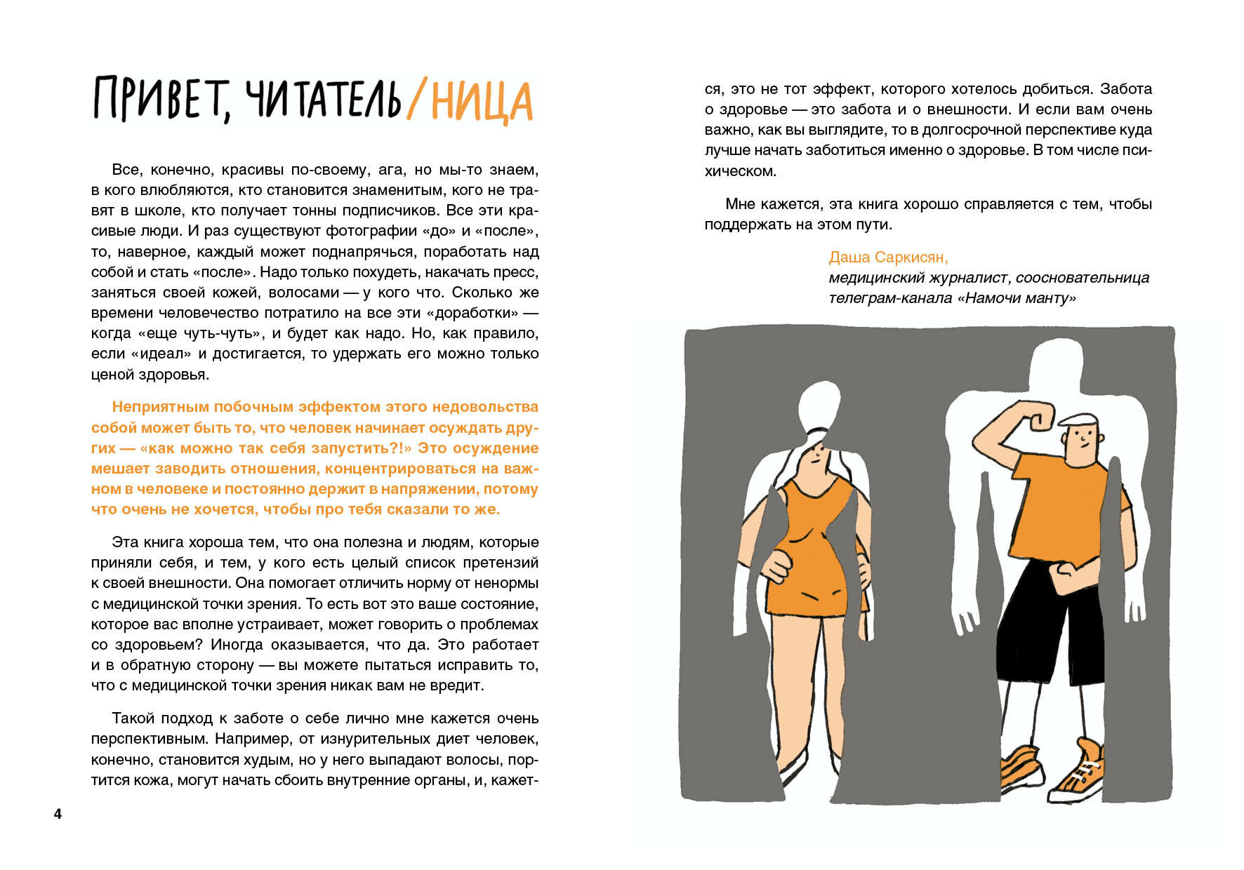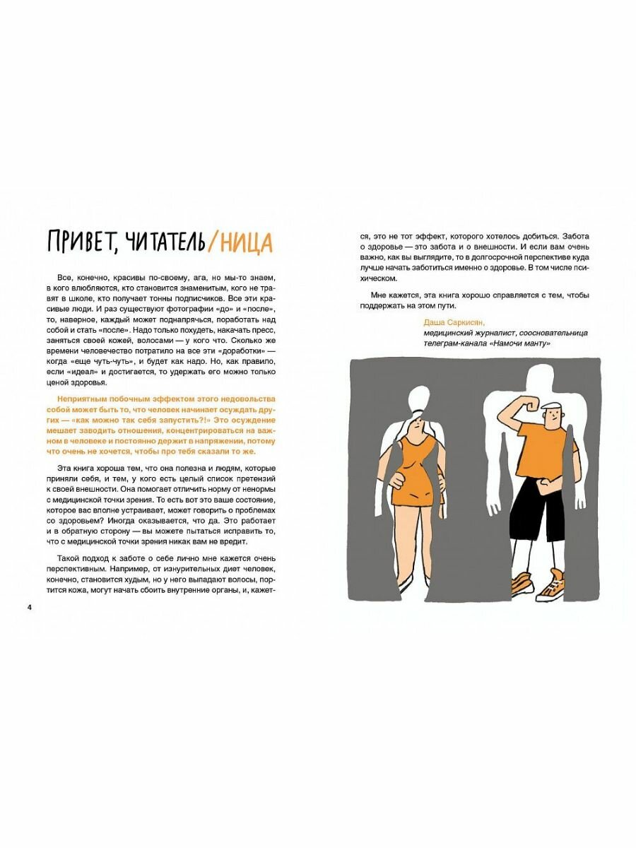 У всех есть представление, как должно выглядеть твоё тело. А лучший способ бороться с чужим мнением, страхами и стереотипами — это знать, как устроен организм и что нужно именно тебе. В этой книге ты узнаешь: для чего нужна норма и что такое нормальный вес? Что происходит в пубертате? Что такое расстройство пищевого поведения? Проблемы тела и как с ними справиться? Как работают социальные сети и как они влияют на наше поведение и настроение?5 причин купить книгу «Тело: мой друг и враг»:Доминик Адель-Кассуто, практикующий эндокринолог и диетолог, её книга основана на многолетнем опыте, современных исследованиях и опыте настоящих подростков;Научный консультант Даша Саркисян, медицинский журналист, соосновательница телеграм-канала «Намочи манту», адаптировала и дополнила книгу под российский контекст;Как всегда – смешные и точные иллюстрации Влады Мяконькиной;Эта книга поможет прийти к принятию своего тела, каким бы оно ни было, через понимание, как устроен организм, пищеварение, и что вообще происходит в пубертатный период;Но эта книга не только про тело, но и про то, как устроена современная культура и социальные сети, которым чаще всего выгодно, чтобы мы всегда оставались недовольными собой.