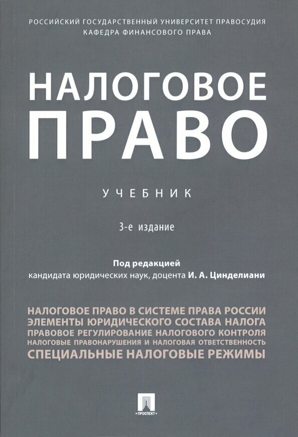 Книга Налоговое право. 3-е издание. Учебник (Цинделиани Имеда Анатольевич), 2020