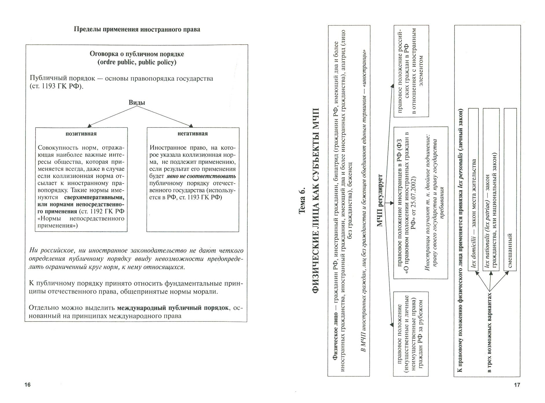 Международное частное право является одной из наиболее сложных юридических дисциплин. В настоящем учебном пособии в схематической форме рассматриваются основные вопросы, предусмотренные учебной программой курса. Пособие направлено на создание комплексного представления о современной науке международного частного права, а также призвано оказать помощь в обобщении и систематизации полученных ранее знаний. Подробное рассмотрение многочисленных дискуссионных вопросов не представляется возможным в предлагаемом читателю формате, однако автором затронуты некоторые из них. Материал содержит ссылки на источники права, необходимые к изучению.Законодательство приводится по состоянию на январь 2015 г.