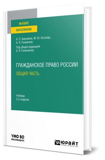 Книга Гражданское право России. Общая часть (Анисимов Алексей Павлович; Рыженков Анатолий Яковлевич; Козлова Марина Юрьевна); ЮРАЙТ, 2022