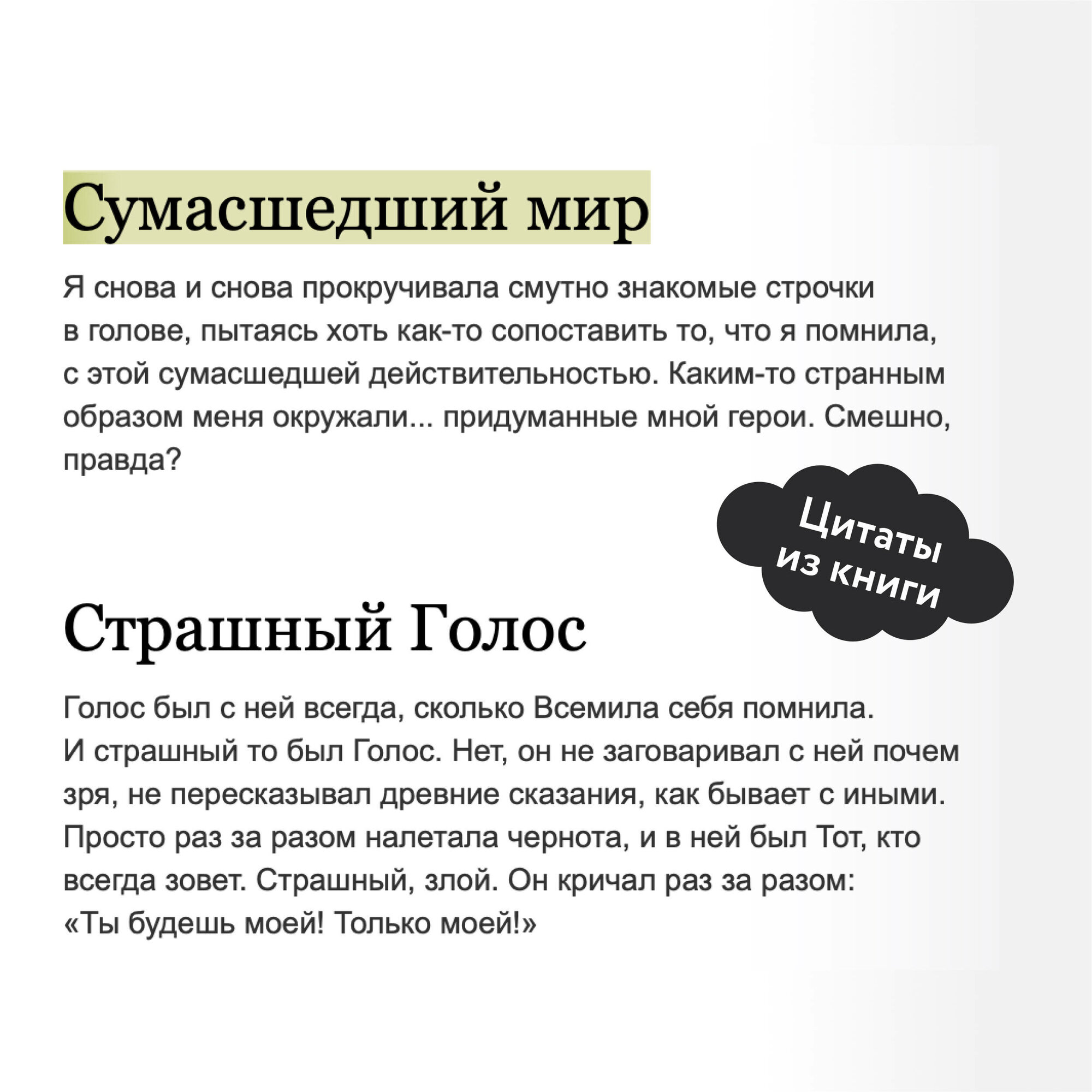 Я снова и снова прокручивала смутно знакомые строчки в голове, пытаясь хоть как-то сопоставить то, что я помнила, с этой сумасшедшей действительностью. Каким-то странным образом меня окружали придуманные мной герои. Смешно, правда?