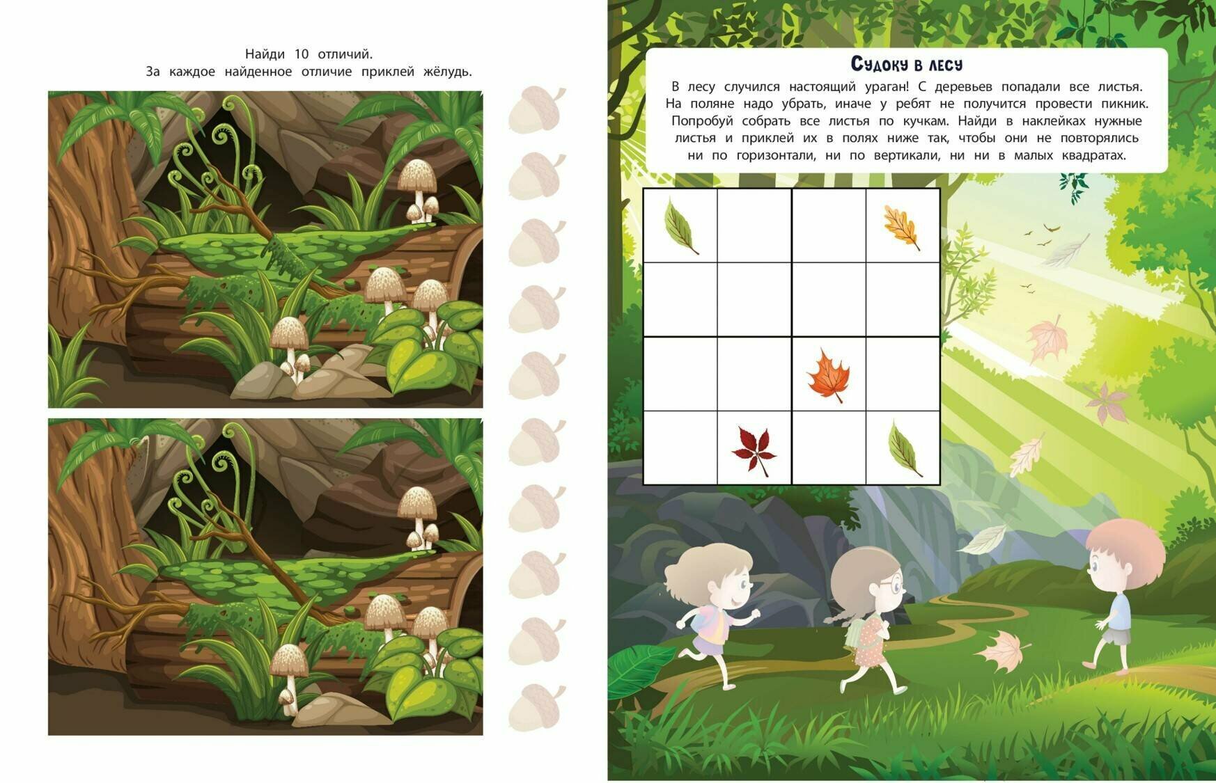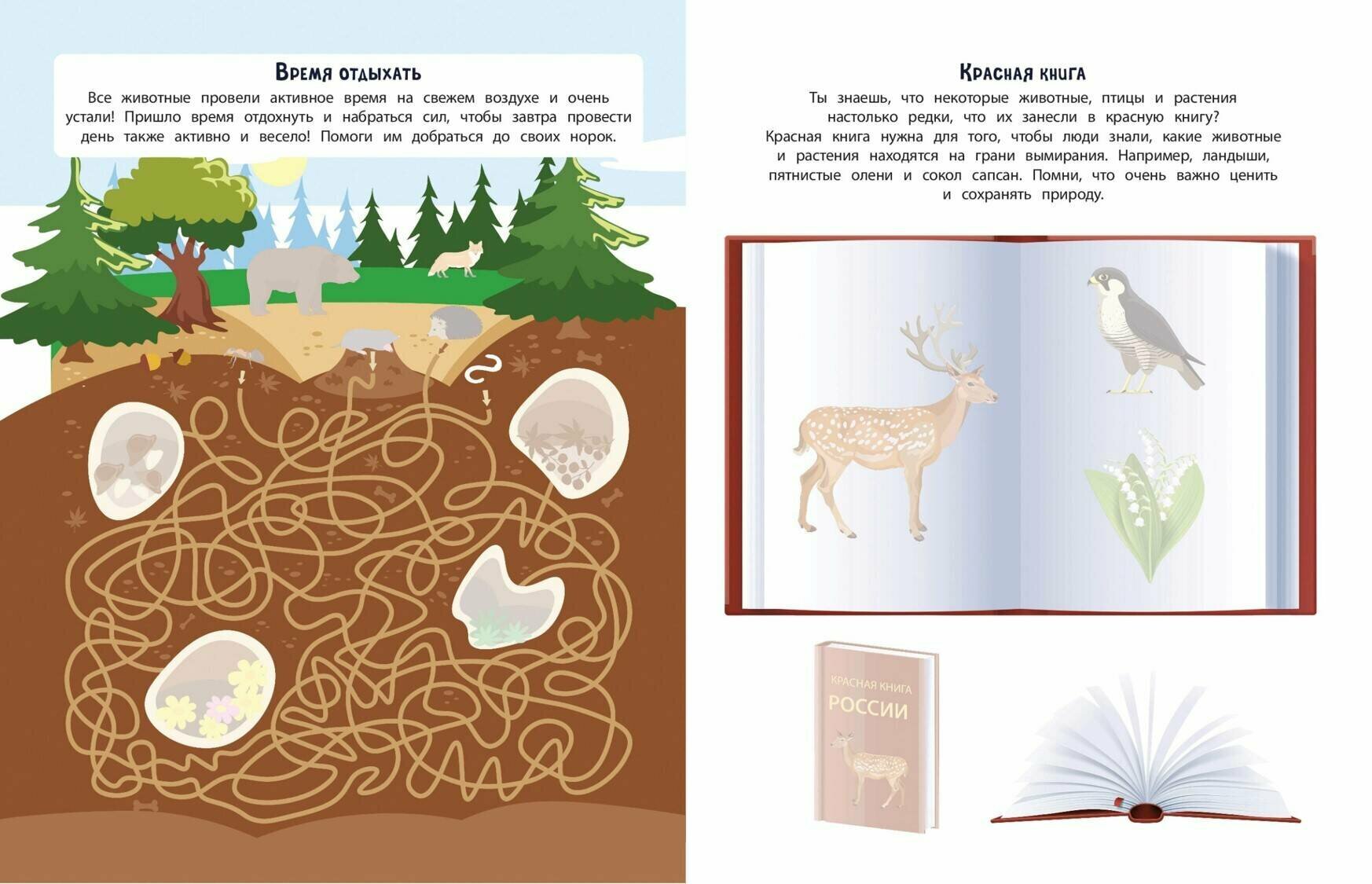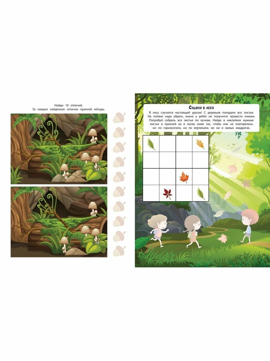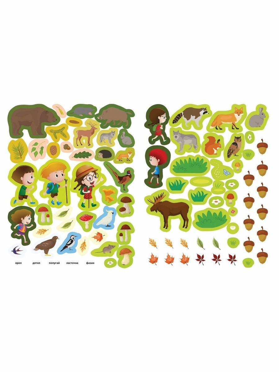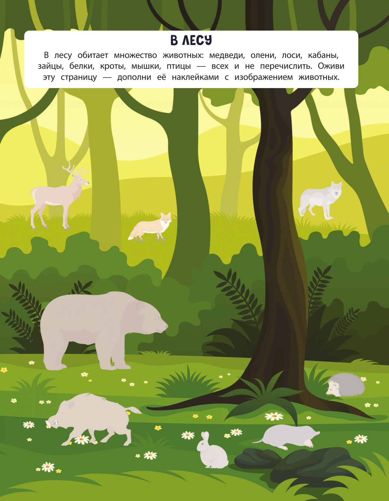 Отправляйся в увлекательное путешествие! Ты узнаешь, какие бывают леса, как называются животные и птицы, которые в них обитают, найдёшь выход из запутанного лабиринта, сыграешь в лесное судоку, а ещё сможешь весело провести время с коллекцией ярких наклеек!