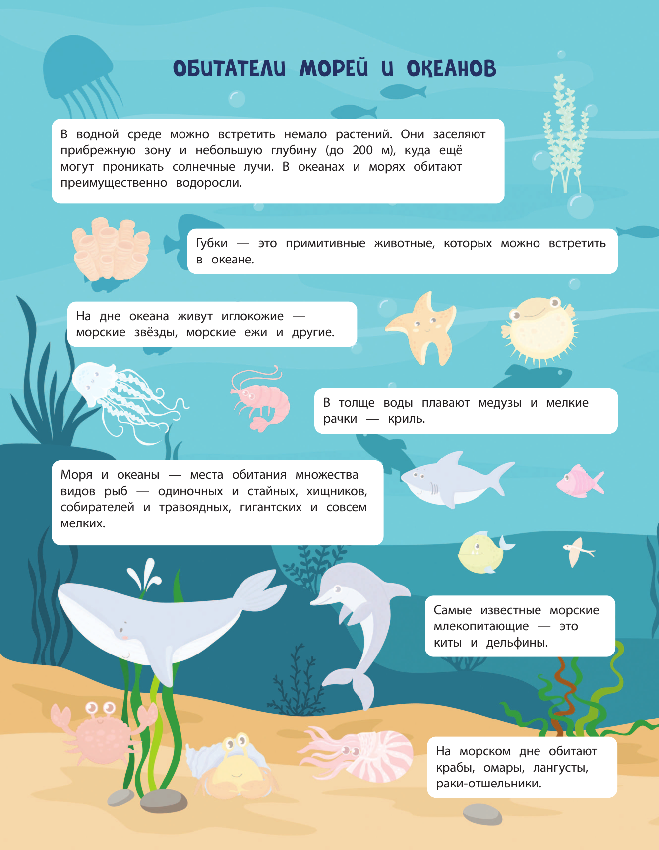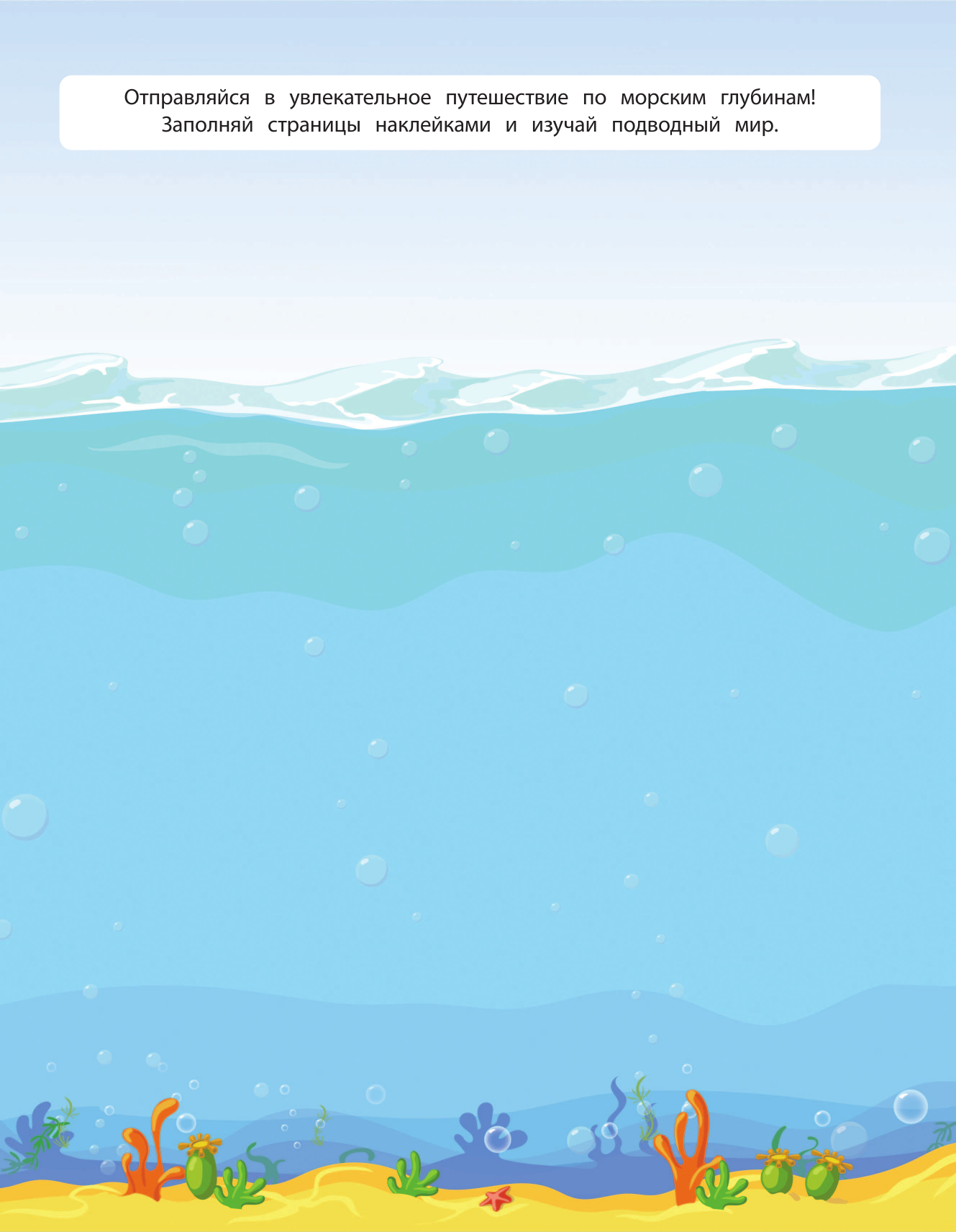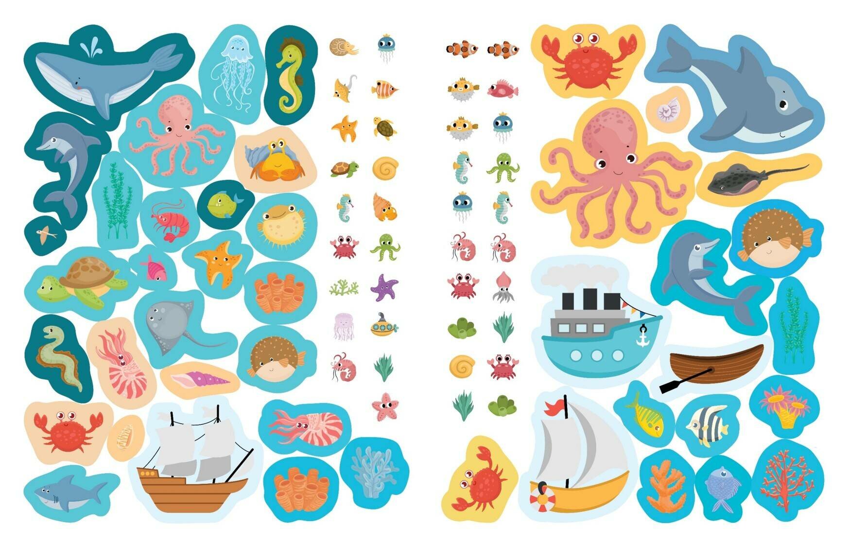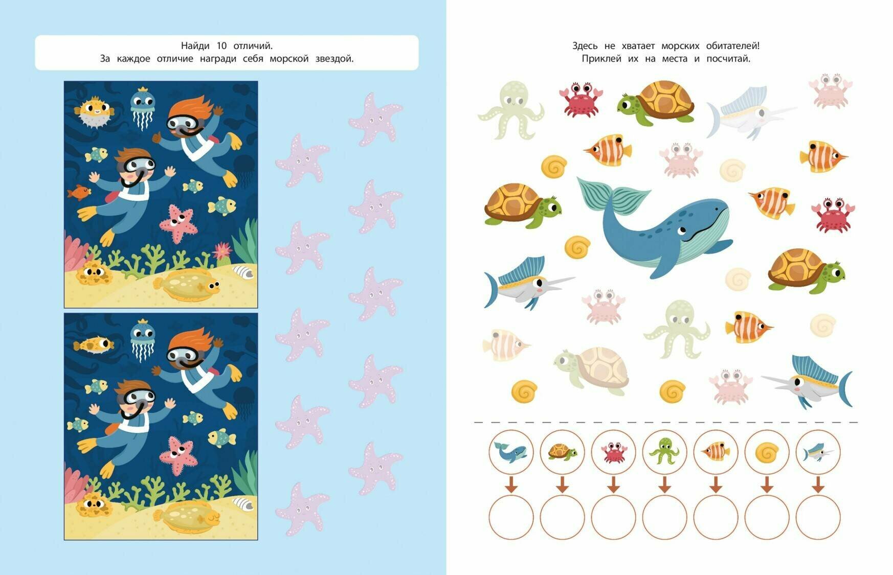 Страницы книги оживают с помощью 150 ярких и красочных наклеек. Дети смогут создавать уникальные подводные сцены, заполнять океанские пространства разнообразными морскими обитателями, создавать особенные пейзажи и оживлять свои собственные истории.