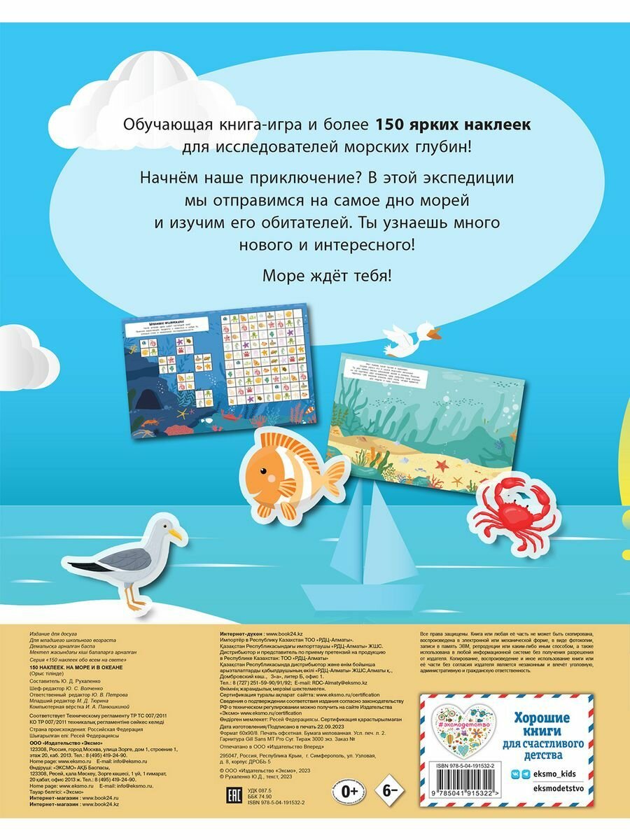 «150 наклеек. На море и в океане» — это захватывающая книга с наклейками, предназначенная для детей в возрасте от 4 до 7 лет. В этой книге дети отправятся в удивительное приключение под воду, где им предстоит исследовать морской мир и океанские глубины.