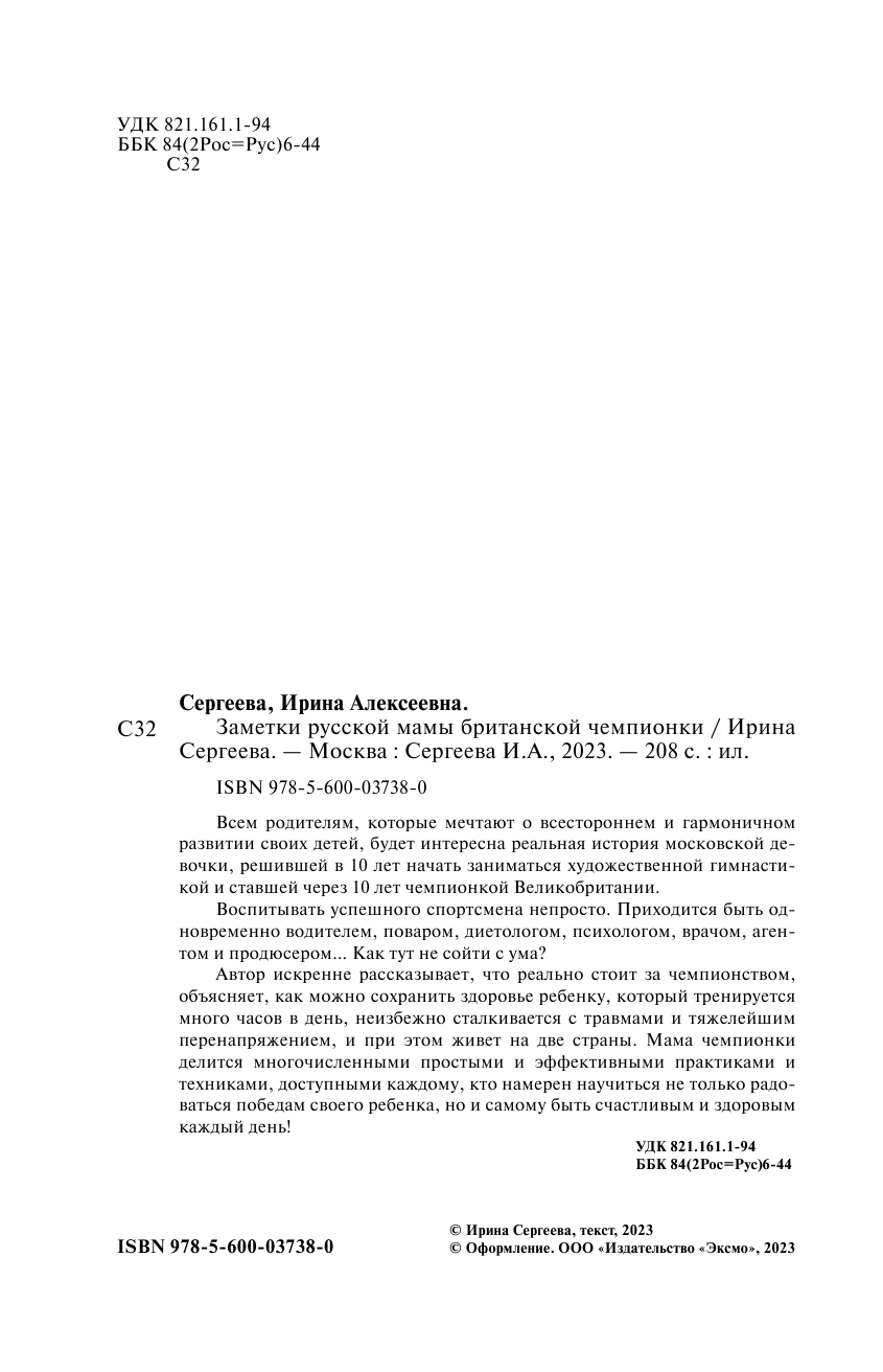 Заметки русской мамы британской чемпионки (Сергеева Ирина Алексеевна); ООО "Издательство "Эксмо", 2024