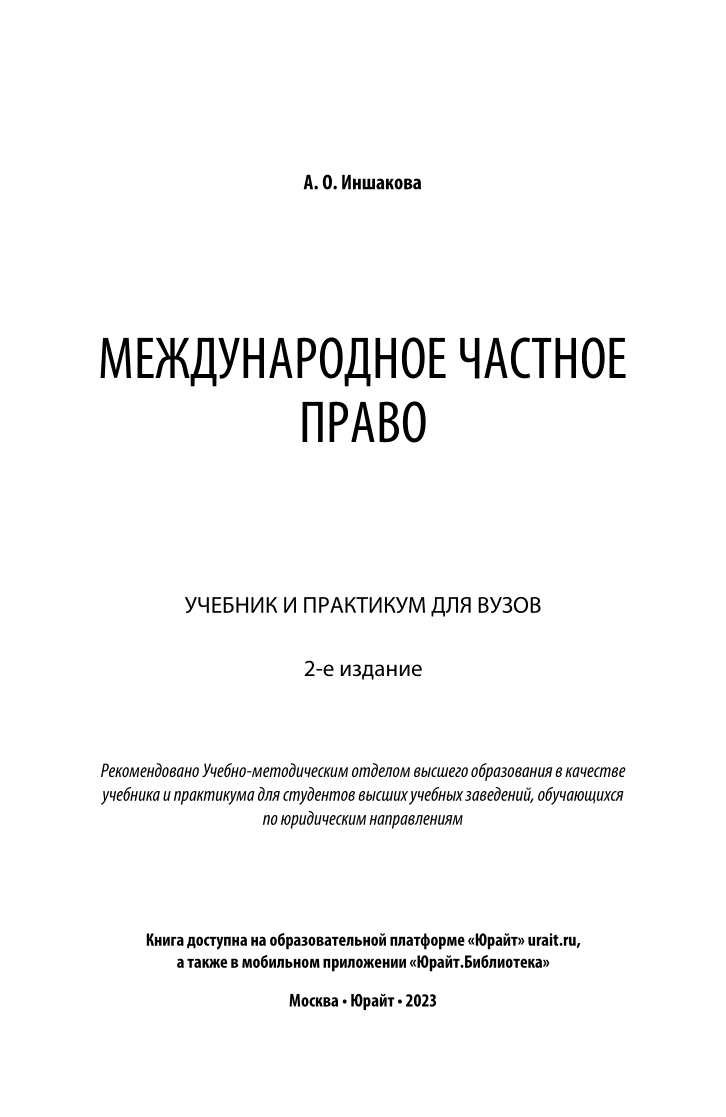 Книга Международное частное право (Агнесса Олеговна Иншакова); ЮРАЙТ, 2022