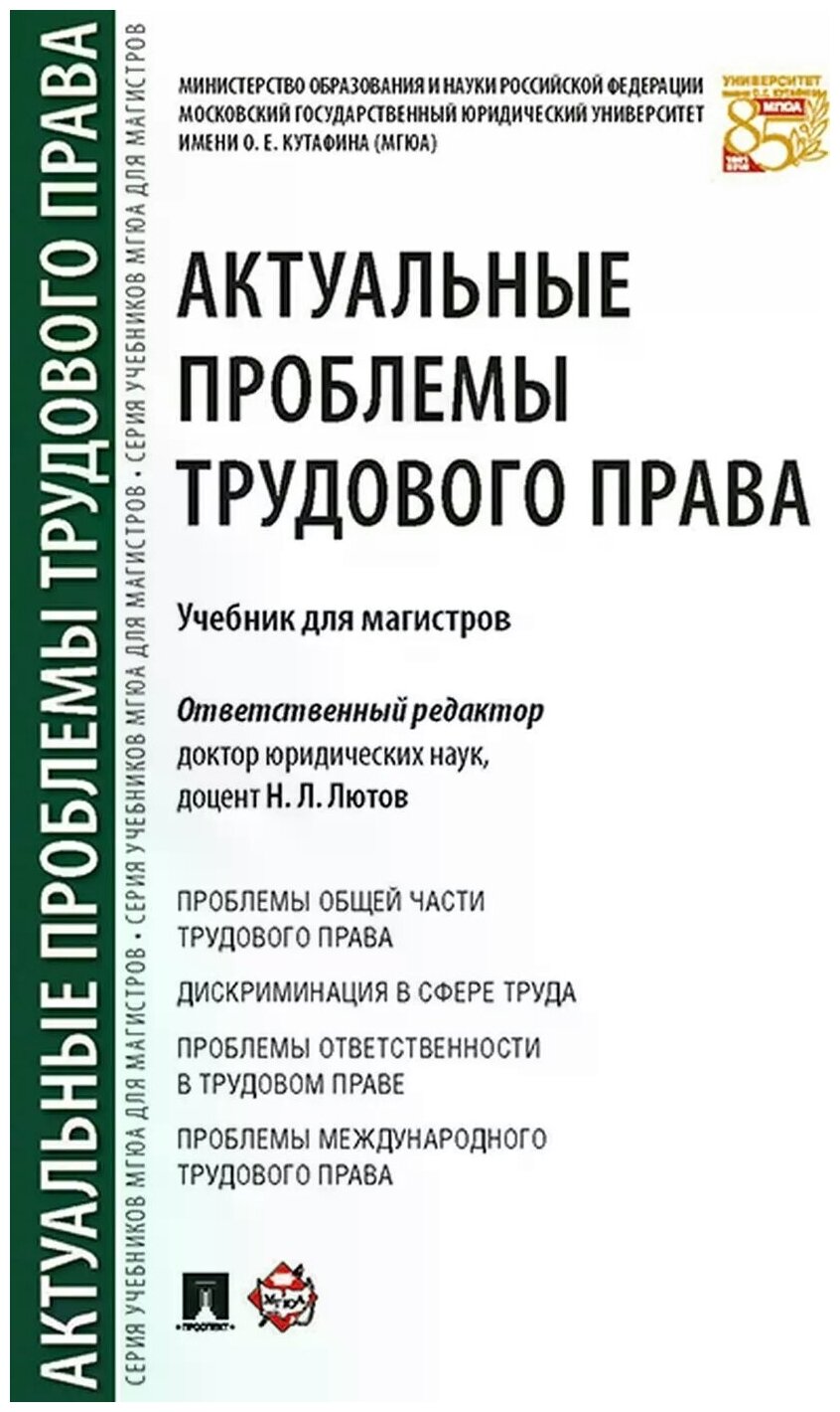 Перед вами первое издание учебника по дисциплине «Актуальные проблемы трудового права», подготовленное для студентов магистратуры. Учебник основан на опыте преподавания данной дисциплины авторами в Московском государственном юридическом университете имени О. Е. Кутафина (МГЮА), а также других вузах в России и за рубежом. В учебнике рассматриваются практические аспекты применения трудового законодательства и судебная практика, а также теоретические концепции трудового права.Законодательство приводится по состоянию на ноябрь 2016 г.Учебник может быть полезен для студентов, аспирантов всех форм обучения, а также всех интересующихся проблематикой трудового права России, международных и зарубежных трудовых норм.