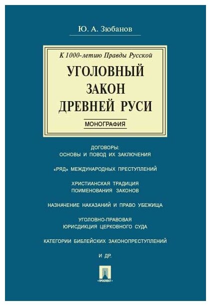 Книга Уголовный закон Древней Руси. К 1000-летию Правды Русской. Монография (Зюбанов Юрий Алексеевич); Проспект, 2021