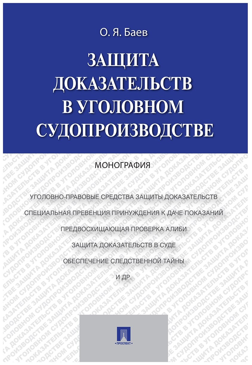 Книга Защита доказательств в уголовном судопроизводстве. Монография (Баев О.Я.), 2021