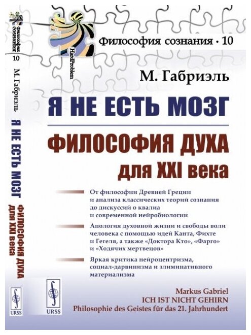 В своей ломающей стереотипы книге «Я не есть мозг» знаменитый немецкий философ Маркус Габриэль вступает в полемику с характерными для современной философии сознания редукционизмом, нейроцентризмом и социал-дарвинизмом, выражая обоснованное сомнение по поводу того, что описание человека, данное нейронаукой, является полным и всеохватным. Следуя традициям философии духа и неоэкзистенциализма, а также основываясь на современных научных исследованиях, Габриэль настаивает на том, что сфера человеческого духа, включающая политику, культуру и язык, гораздо шире рамок, в которые нас пытается загнать современный сциентизм, и нейронаучное описание человека является лишь одним из многих аспектов рефлексии человеческого духа.