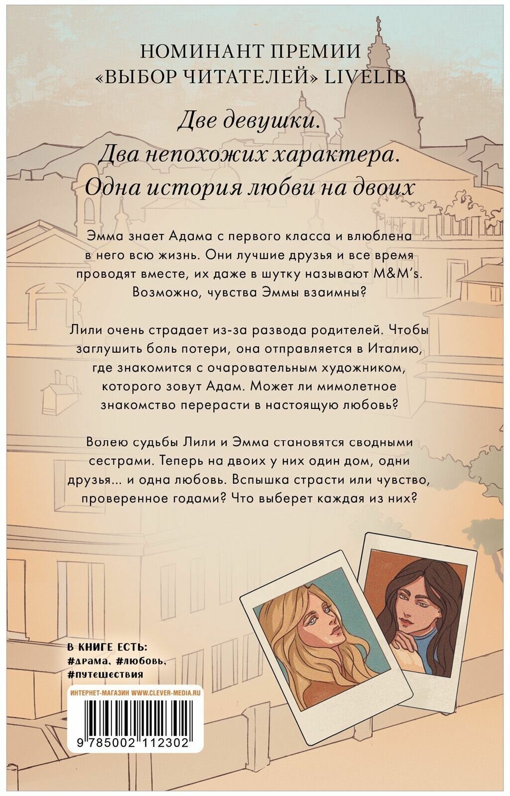 Номинант премии "Выбор читателей" LiveLib. Две девушки. Два непохожих характера. Одна история любви на двоих. Эмма знает Адама с первого класса и влюблена в него всю жизнь. Они лучшие друзья и все время проводят вместе, их даже в шутку называют M&M’s. Возможно, чувства Эммы взаимны? Лили очень страдает из за развода родителей. Чтобы заглушить боль потери, она отправляется в Италию, где знакомится с очаровательным художником, которого зовут Адам. Может ли мимолетное знакомство перерасти в настоящую любовь? Волею судьбы Лили и Эмма становятся сводными сестрами. Теперь на двоих у них один дом, одни друзья… и одна любовь. Вспышка страсти или чувство, проверенное годами? Что выберет каждая из них?