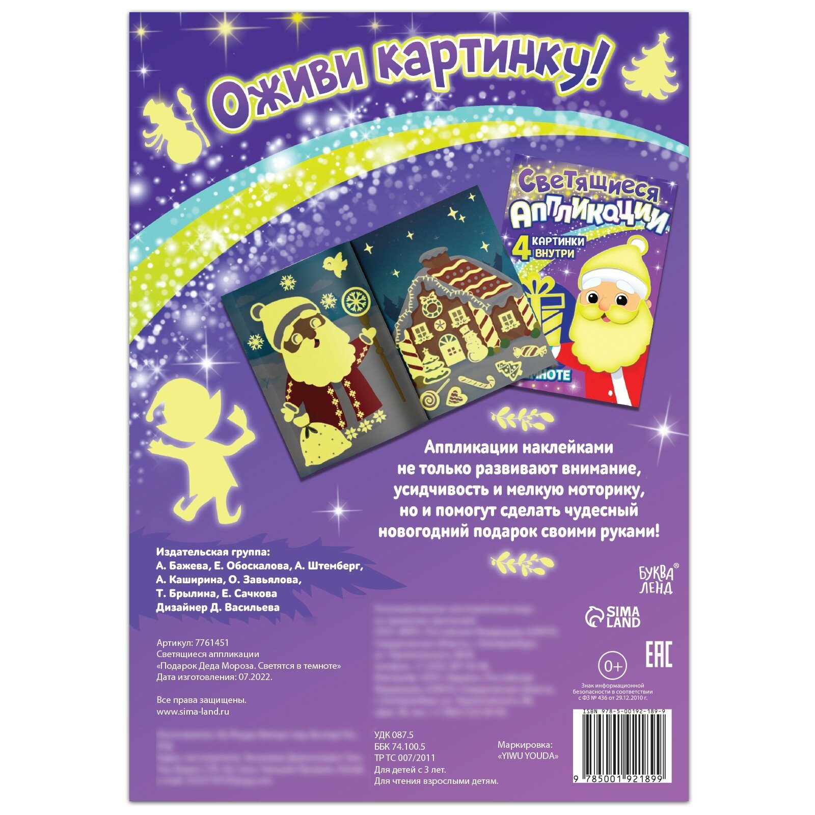 Книга Светящиеся аппликации Подарок Деда Мороза. Светятся в темноте 4 картинки 12 стр. (не известен), 2022