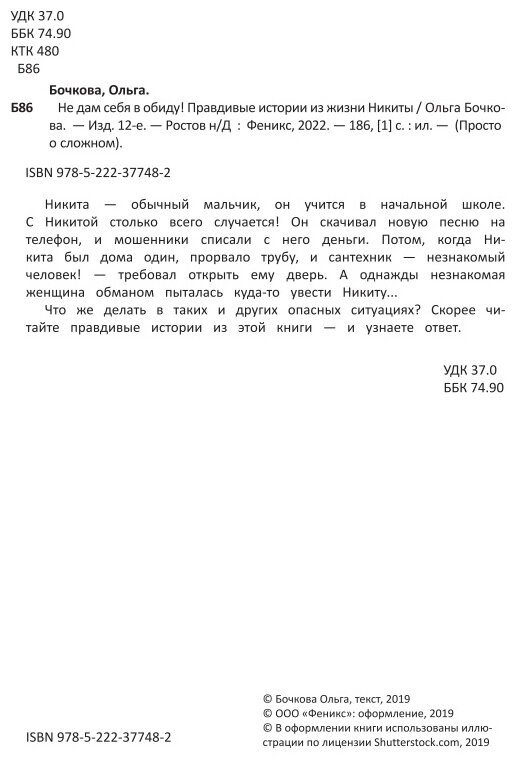 Книга Не дам себя в обиду! Правдивые истории из жизни Никиты (Ольга Александровна Бочкова); Феникс, 2022