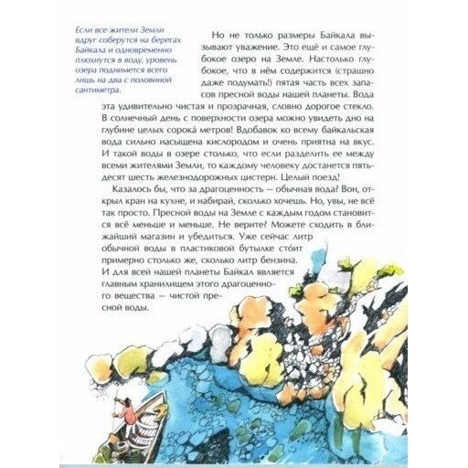 Байкал - самое большое и глубокое озеро на Земле. Словно драгоценный алмаз, лежит оно посреди бескрайних сибирских просторов. В нём чистейшая вода из трёхсот горных рек, удивительные животные и рыбы, которых больше нет нигде на нашей планете. Прогуляться по его прозрачному льду, узнать легенду о красавице Ангаре и разгадать загадки старинной песни "Славное море - священный Байкал" смогут читатели этой книги.