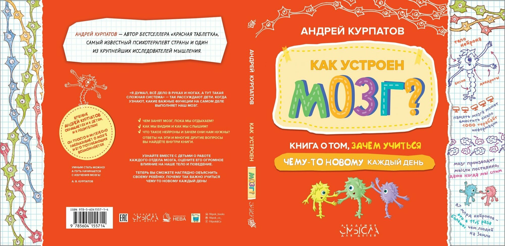 "Я думал, всё дело в руках и ногах, а тут такая сложная система" - так рассуждают большинство детей, когда узнают, какие важные функции на самом деле выполняет наш мозг. Андрей Курпатов - автор множества бестселлеров - впервые обращается к детям. Он просто и интересно рассказывает о мозге и его потрясающих возможностях. "Чем занят мозг, пока мы отдыхаем?" "Как мы видим и что мы слышим?" "Как можно научиться всему, что захочешь?" Ответы на эти и многие другие вопросы вы найдете внутри книги. Узнайте вместе со своим ребёнком о работе каждого отдела мозга, оцените его огромное влияние на наше тело и поведение. Иллюстрации в книге помогут лучше понять работу различных отделов и всего мозга в целом: теперь Вы сможете наглядно объяснить своему ребёнку, почему так важно учиться чему-то новому каждый день! Для чтения взрослыми детям.
