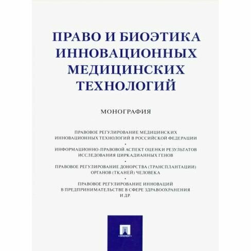 Книга Инюшкин А.и дрПраво и биоэтика инновационных медицинских технологий.Монография (Инюшкин Алексей Николаевич; Малышев Константин Владимирович; Инюшкин Андрей Алексеевич); Проспект, 2022