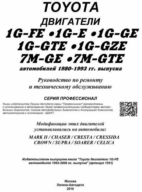Книга Toyota двигатели 1G-FE 1G-E 1G-GE 1G-GTE 1G-GZE 7M-GE 7M-GTE автомобилей 19... (Авторский коллектив), 2012