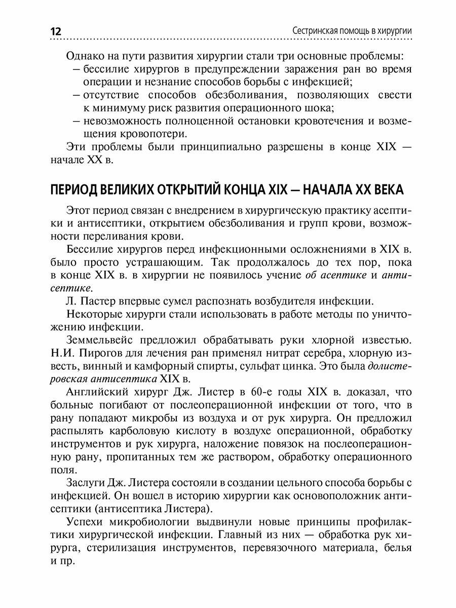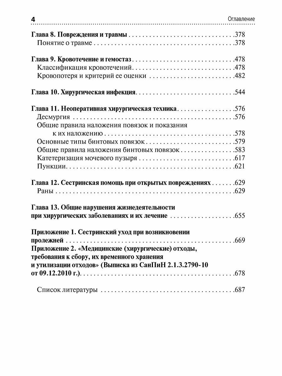 Учебник составлен в соответствии с программой курса «Сестринская помощь в хирургии» для средних специальных учебных заведений по специальности «Сестринское дело». Содержит показания, противопоказания и описание техники выполнения практически всех основных хирургических манипуляций в виде алгоритмов, которыми должен овладеть каждый учащийся в процессе изучения хирургии. Новизной учебника являются внесенные в издание вопросы по сестринскому процессу в хирургии. .Книга снабжена таблицами, схемами, иллюстрациями, тестами с эталонами ответов для программированного обучения и контроля знаний по хирургии. .Издание рекомендовано учащимся медицинских училищ и колледжей, средним медицинским работникам, слушателям курсов повышения квалификации, медицинскому персоналу, который занимается практическим здравоохранением, а также преподавателям хирургии.