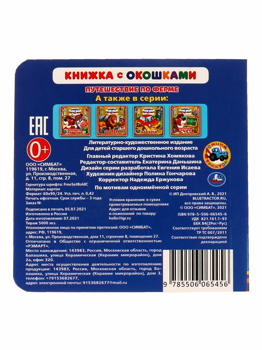 Книга Путешествие по ферме. Книжка с окошками А6. СИНИЙ ТРАКТОР. 127х127мм 10 карт. (без автора), 2021
