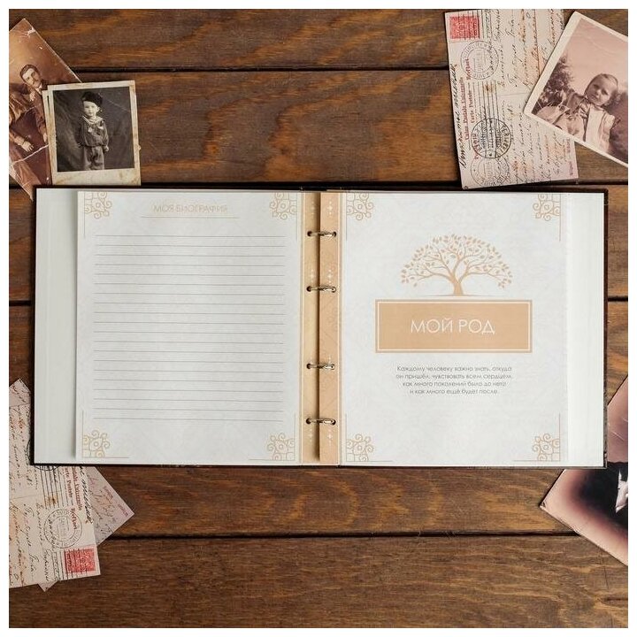 Родословная книга "Наша семья", с деревянным элементом, 84 страницы, 24.5 х 23 х 4 смНаследие дома в одной книге!Семья — самое ценное, что есть в жизни человека. Кто из нас не хочет оставить память о себе и своей семье будущим поколениям? Ведь история может быть поводом для гордости! Для создания летописи вам пригодится родословная книга. Книга оберегает важную информацию и помогает шаг за шагом погружаться в прошлое.Книга включает в себя:- руководство по заполнению;- разделы: "Автор семейной летописи", "Супруг(-а) автора семейной летописи", "Мой род", "Откуда мы родом", "Древо профессий", "Наша свадьба", "Наши дети", "Памятные события нашей семьи", "Семейные традиции";- индивидуальные листы;- послание потомкам.Книга на кольцах содержит 84 страницы (включая инструкции и наименования разделов), лист генеалогического древа и географии рода.Удобная организация позволит упорядочить данные по ветвям и хронологии.Напишите свою семейную летопись!