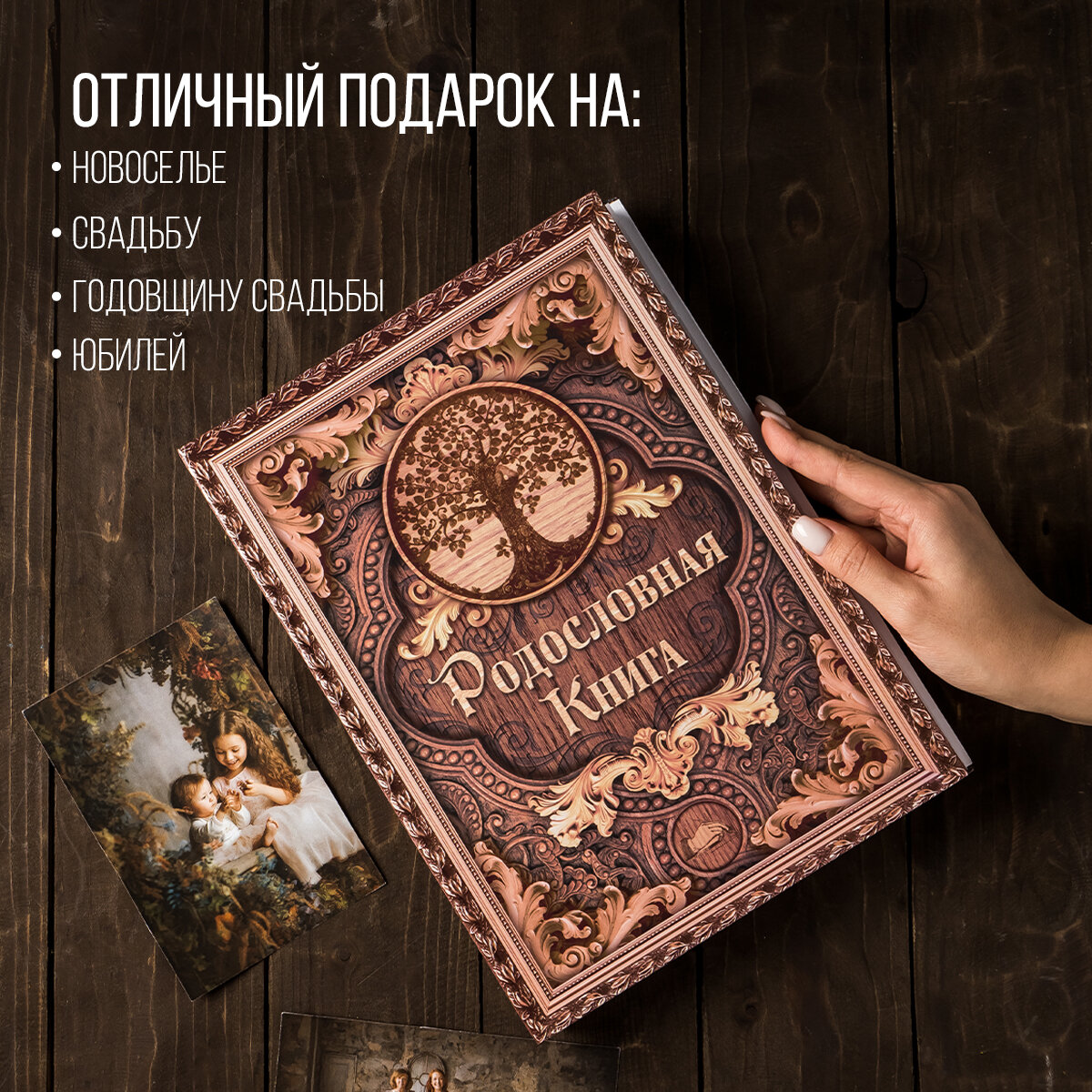Семья — главное богатство в жизни человека! Сохранить традиции, записать историю поколений и передать их по наследству поможет родословная книга. Она содержит 50 листов (включая инструкции и наименования частей альбома), скреплённых между собой атласной лентой. Внутри книги вы найдёте: персональные листы; рекомендации по заполнению и пример; страницы для воспоминаний; разделы: «Награды и достижения», «Традиции нашего рода»; место для послания потомкам; генеалогическое древо формата А3 и наклейки для него. Удобная организация позволяет упорядочить данные о предках по хронологии. Напишите свою фамильную летопись!