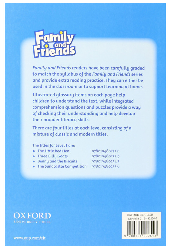 Family and Friends have been carefully graded to match the syllabus of the Family and Friends Series and provide extra reading practice. They can either been used in the classroom or to support learning at home.Illustrated glossary items on each page help children to understand the text, while integrated comprehension questions and puzzles provide a way of checking their understanding and help develop their broader literacy skills.There are four titles in each level consisting of a mixture of classic and modern titles.