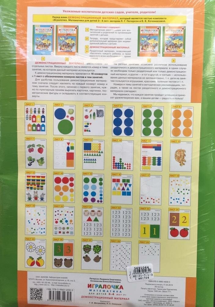 Петерсон Игралочка Математика для Детей 3-4 лет Демонстрационный Материал (Людмила Георгиевна Петерсон); БИНОМ. Лаборатория знаний, 2019