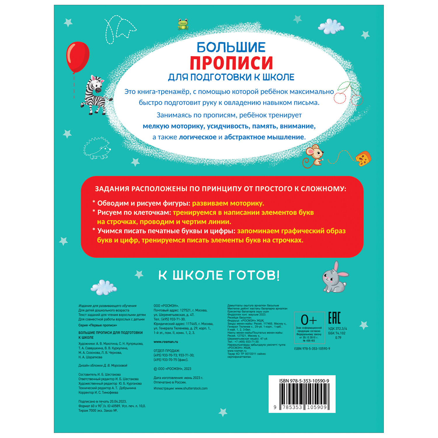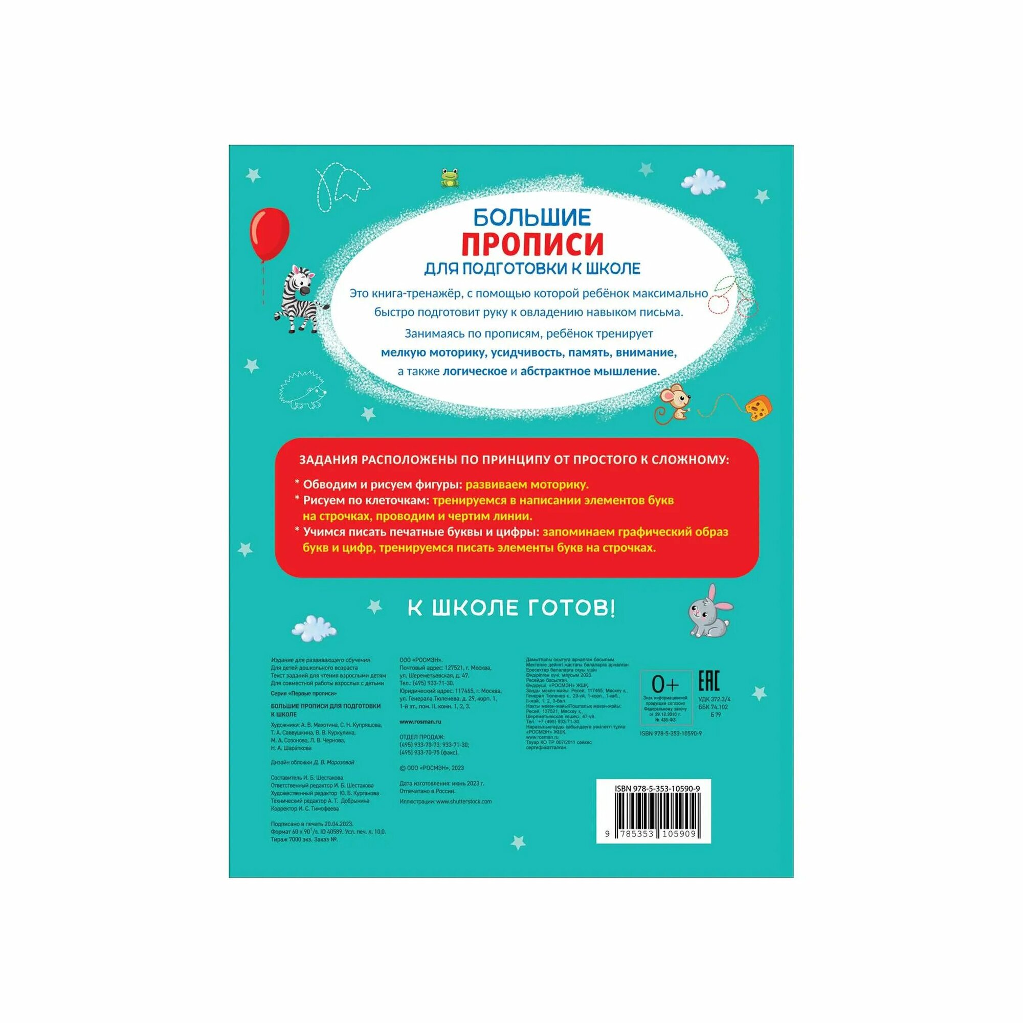 Книга Большие прописи для подготовки к школе (Шестакова Ирина Борисовна); РОСМЭН, 2023