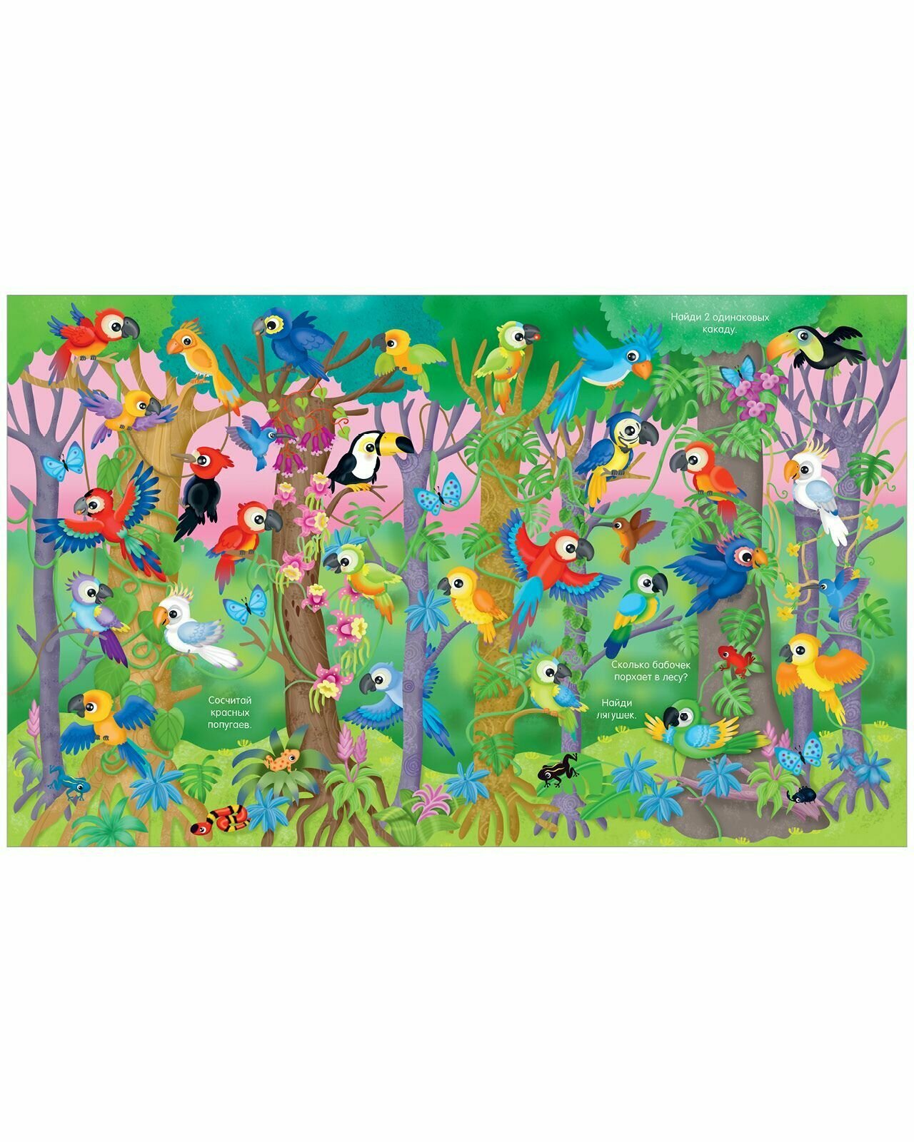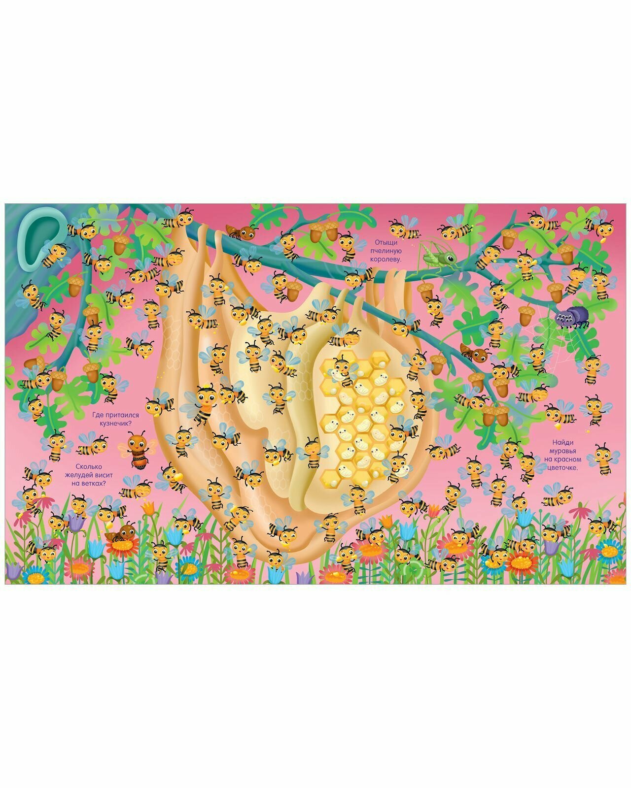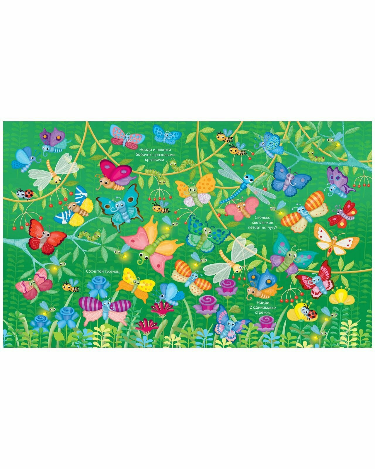 На страницах этой книги живут самые разные животные: кенгуру, попугаи, бабочки, черепахи, коты, собаки, крокодилы, медузы, дельфины и даже пчелы. Только самые зоркие отыщут тут двух одинаковых стрекоз, сосчитают всех цыплят и разглядят кролика в стаде овечек!