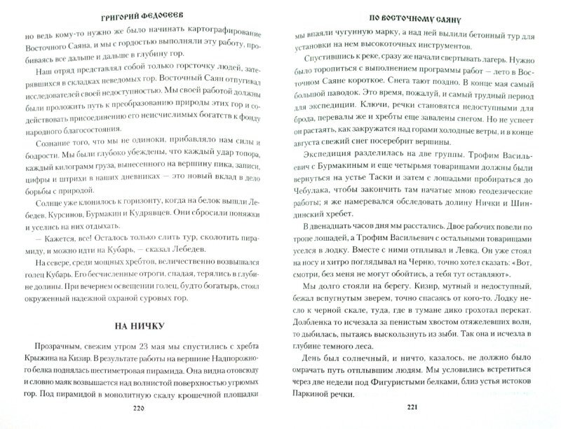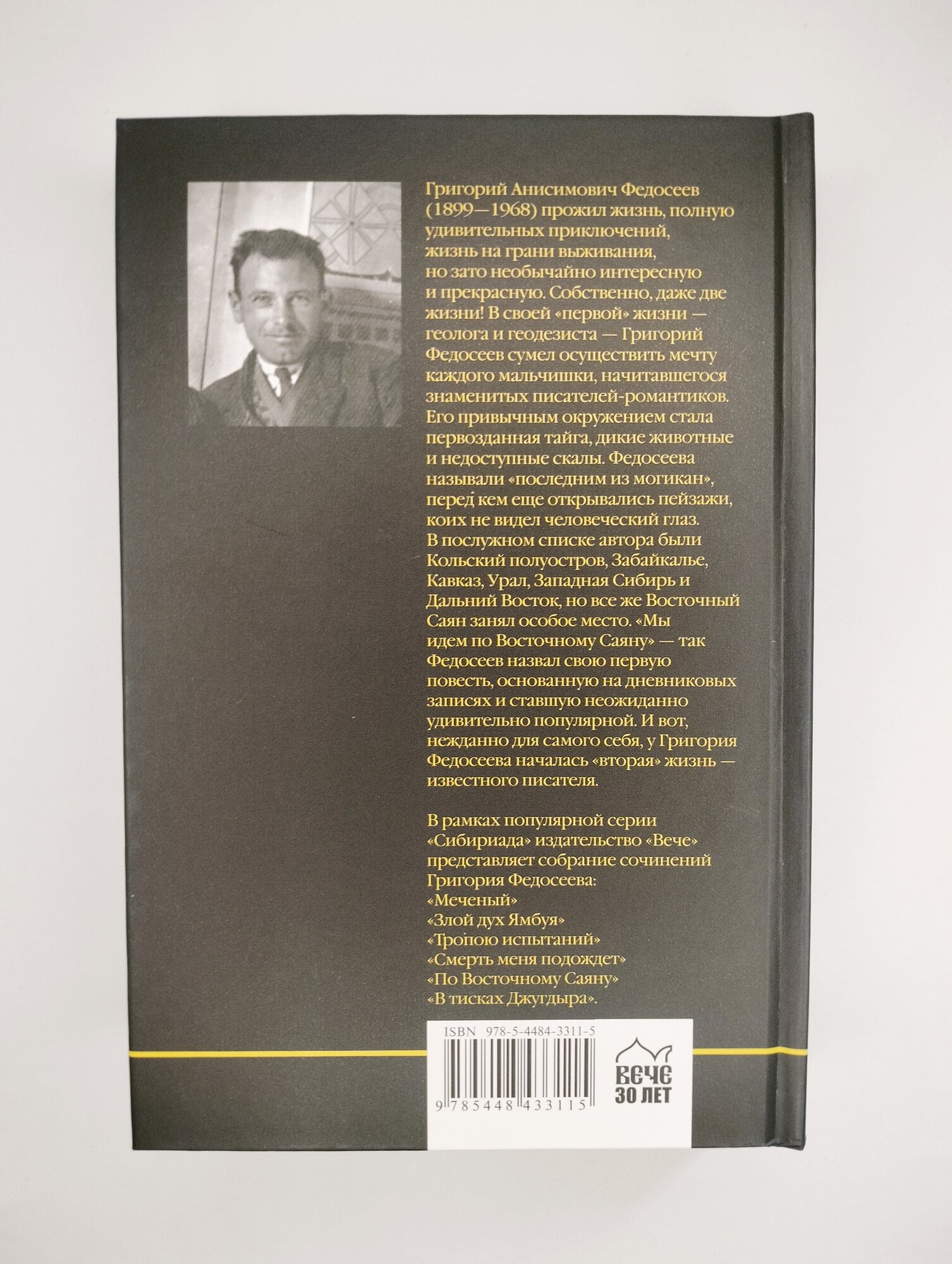 Григорий Анисимович Федосеев (1899-1968) прожил жизнь, полную удивительных приключений, жизнь на грани выживания, но зато необычайно интересную и прекрасную. Собственно, даже две жизни! В своей "первой" жизни - геолога и геодезиста - Григорий Федосеев сумел осуществить мечту каждого мальчишки, начитавщегося знаменитых писателей-романтиков. Его привычным окружением стала первозданная тайга, дикие животные и недоступные скалы. Федосеева называли "последним из могикан", перед кем еще открывались пейзажи, коих не видел человеческий глаз. В послужном списке автора были Кольский полуостров, Забайкалье, Кавказ, Урал, Западная Сибирь и Дальний Восток, но все же Восточный Саян занял особое место. "Мы идем по Восточному Саяну" - так Федосеев назвал свою первую повесть, основанную на дневниковых записях и ставшую неожиданно удивительно популярной. И вот, нежданно для самого себя, у Григория Федосеева началась "вторая" жизнь- известного писателя.