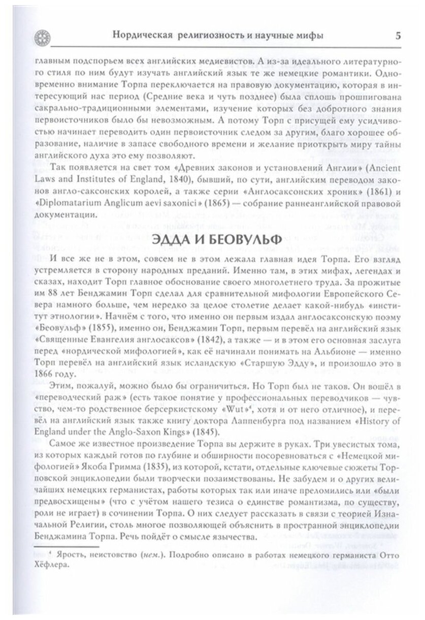 Классический труд по скандинавской мифологии. Надо отметить, что книга была написана в эпоху расцвета европейского романтизма, когда в Германии братья Гримм писали свои сказки о средневековой Германии, а в России Аксаков написал свою сказку \"Аленький цветочек\" и российские этнографы-фольклористы собирали сказания и легенды по всем уголкам Руси. Вот и эта книга - это работа Торпа, собравшего воедино сказания и легенды со всех уголков Скандинавии. Надо отметить, что именно Торпу мы обязаны появлению легенды о Беовульфе. Так что этот классический труд заставит вас окунуться в мир древних эльфов, гномов, троллей и колдунов. Из этого труда черпал вдохновение сам Толкин, создавая свои бессмертные книги \"Властелин колец\" и \"Хоббит\".